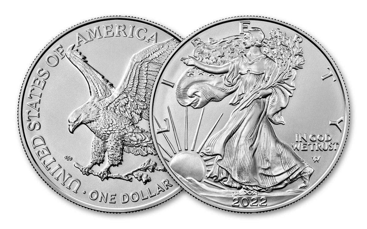 One 2022 Type-2 American .999 Fine Silver Eagle Dollar Coin.