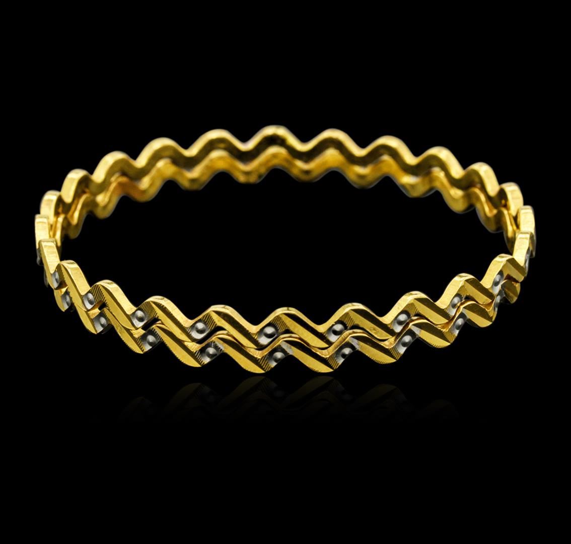 22KT Two-Tone Gold Fancy Bangle Bracelets