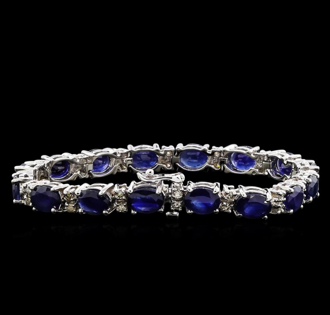 One bracelet featuring: 14KT white gold weighing 18.24 grams containing blue sapphires with a total weight of 23.22ct and diamonds with a total weight of 1.14ct.