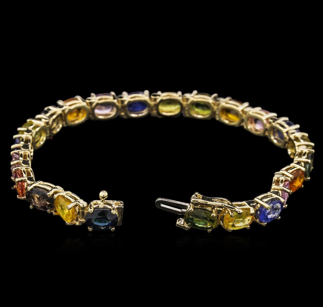 One bracelet featuring: 14KT yellow gold weighing 13.68 grams containing 23 multi color sapphire with a total weight of 23.50ct.