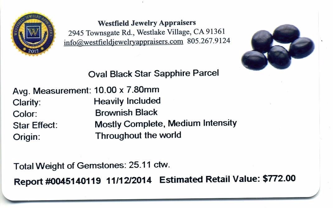 25.11ctw. Oval Black Star Sapphire Parcel. Westfield Appraised at $772.00.