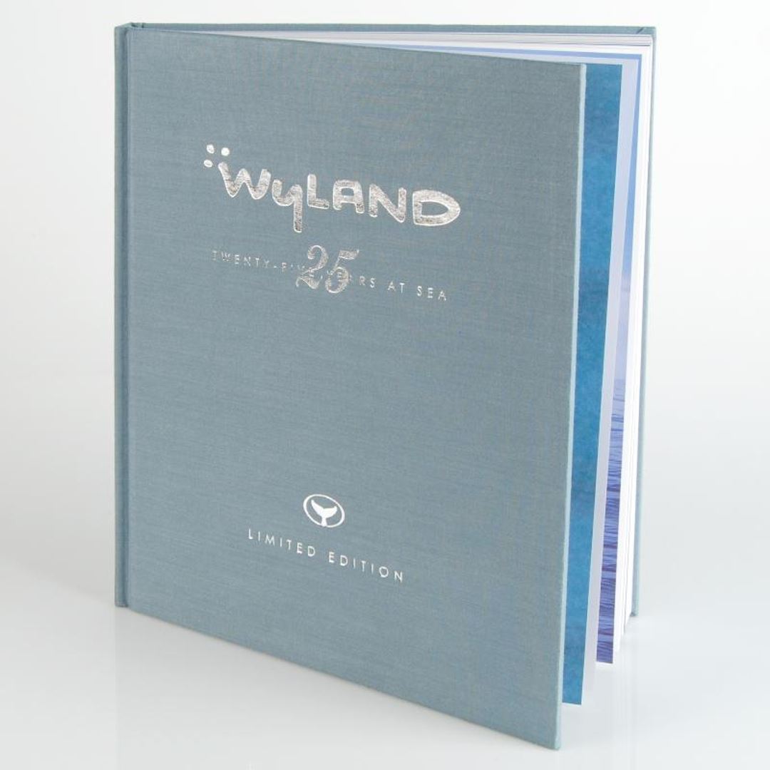 Wyland's exquisite and colorful paintings are expressive, emotive and world-famous. "Wyland: 25 Years at Sea" (2006) authored by John Yow with Preface by Wyland, is a limited edition deluxe Collector's Fine Art hardcover book, numbering 178 pages with full color text and images. Comes in a special Collector's Gift Box. This commemorative book is numbered out of only 750, and features a vellum front page that is numbered, hand signed and thumb-printed by Wyland! Includes Certificate of Authenticity! Measures approx. 10.5" (width) x 12.5" (height) x 1" (thick).