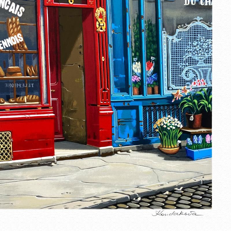 "28 Boulangerie" is a limited edition serigraph on paper by Liudmila Kondakova, hand signed by the artist. Includes Certificate of Authenticity. Measures approx. 23" x 28.5" (border), 18" x 24" (image).