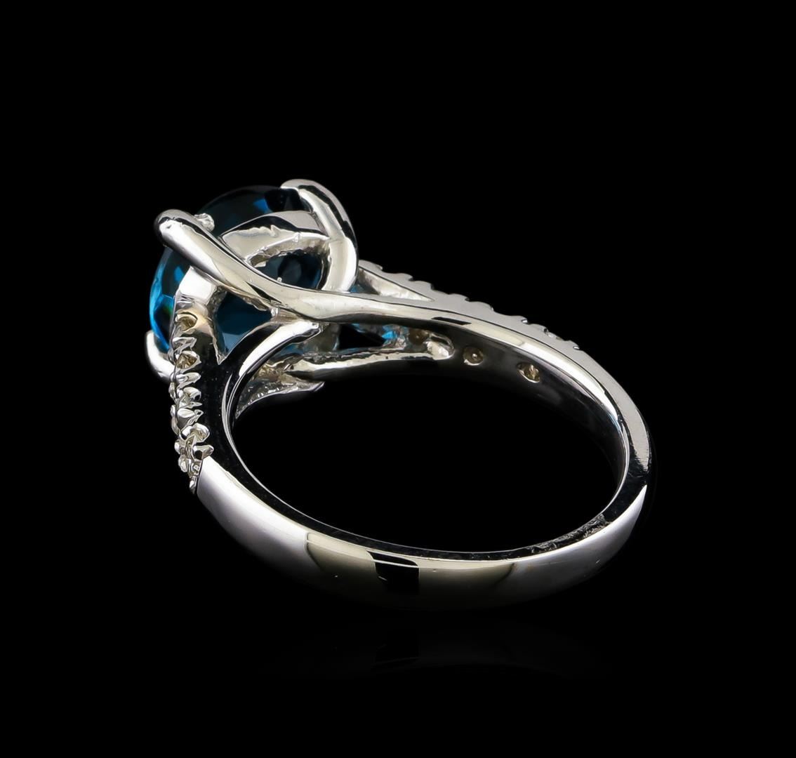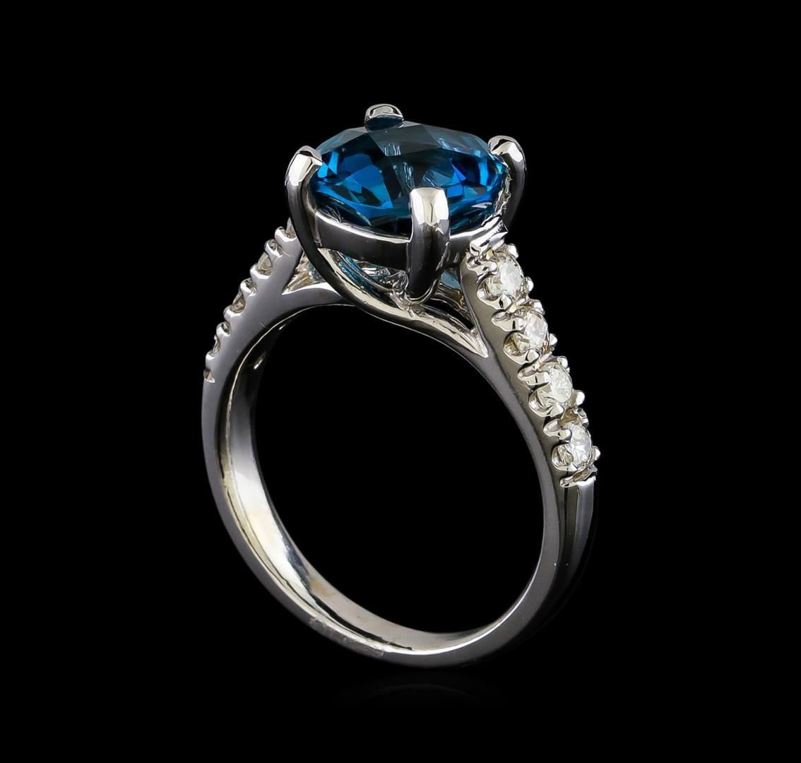 One ring featuring: 14KT white gold weighing 5.21 grams containing one blue topaz center stone with a total weight of 3.00ct and diamonds with a total weight of 0.45ct.