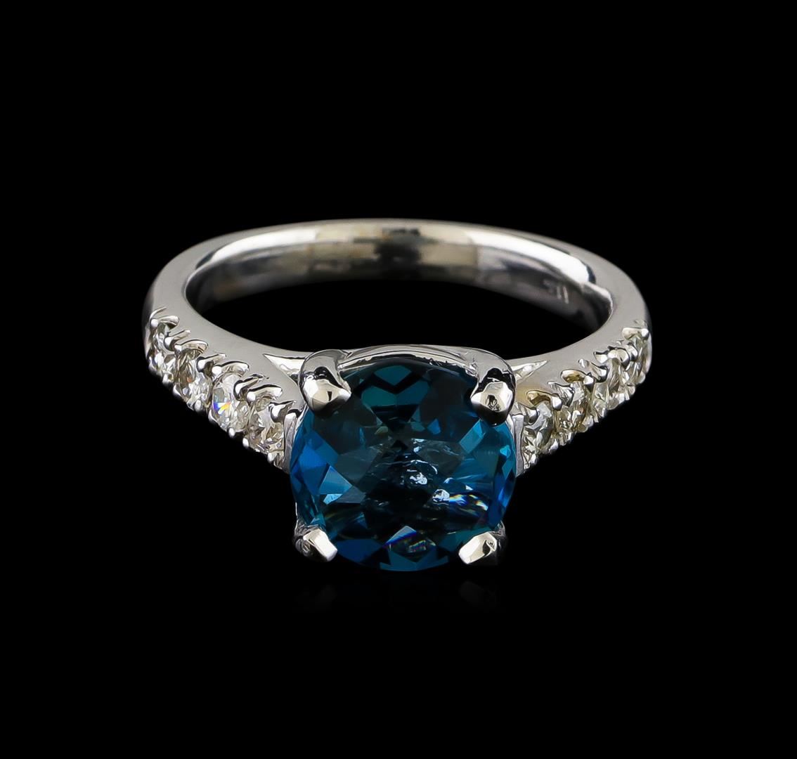 One ring featuring: 14KT white gold weighing 5.21 grams containing one blue topaz center stone with a total weight of 3.00ct and diamonds with a total weight of 0.45ct.