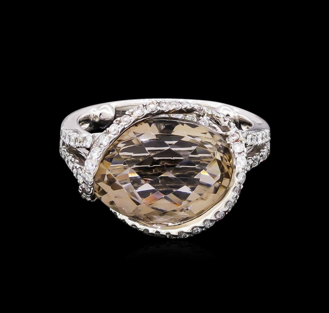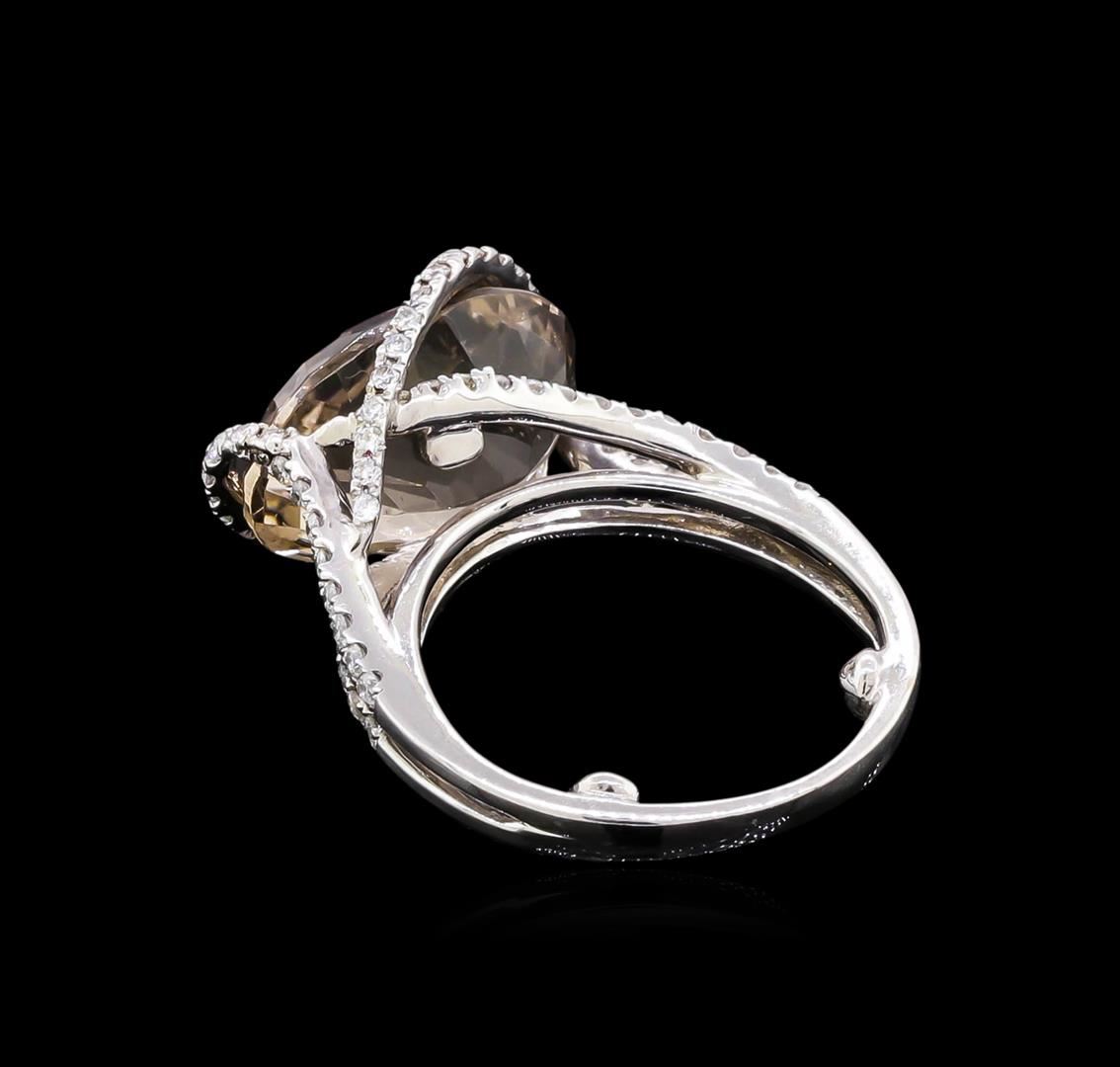One ring featuring: 18KT white gold weighing 5.30 grams containing one smoky quartz with a total weight of 3.00ct and side diamonds with a total weight of 0.75ct.