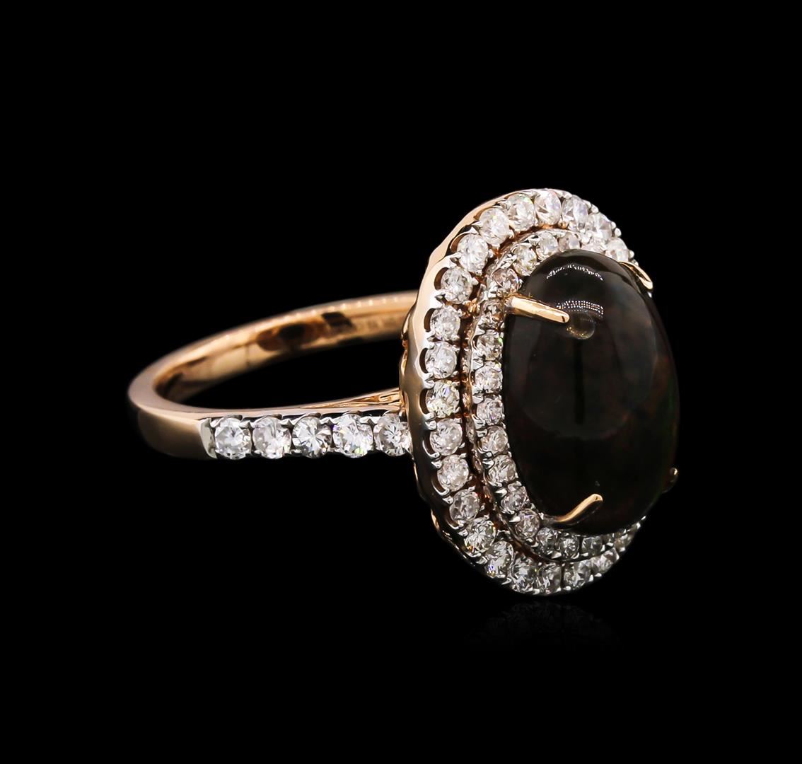 One ring featuring: 14KT rose gold weighing 5.50 grams containing one opal with a total weight of 3.00ct and diamonds with a total weight of 1.15ct.