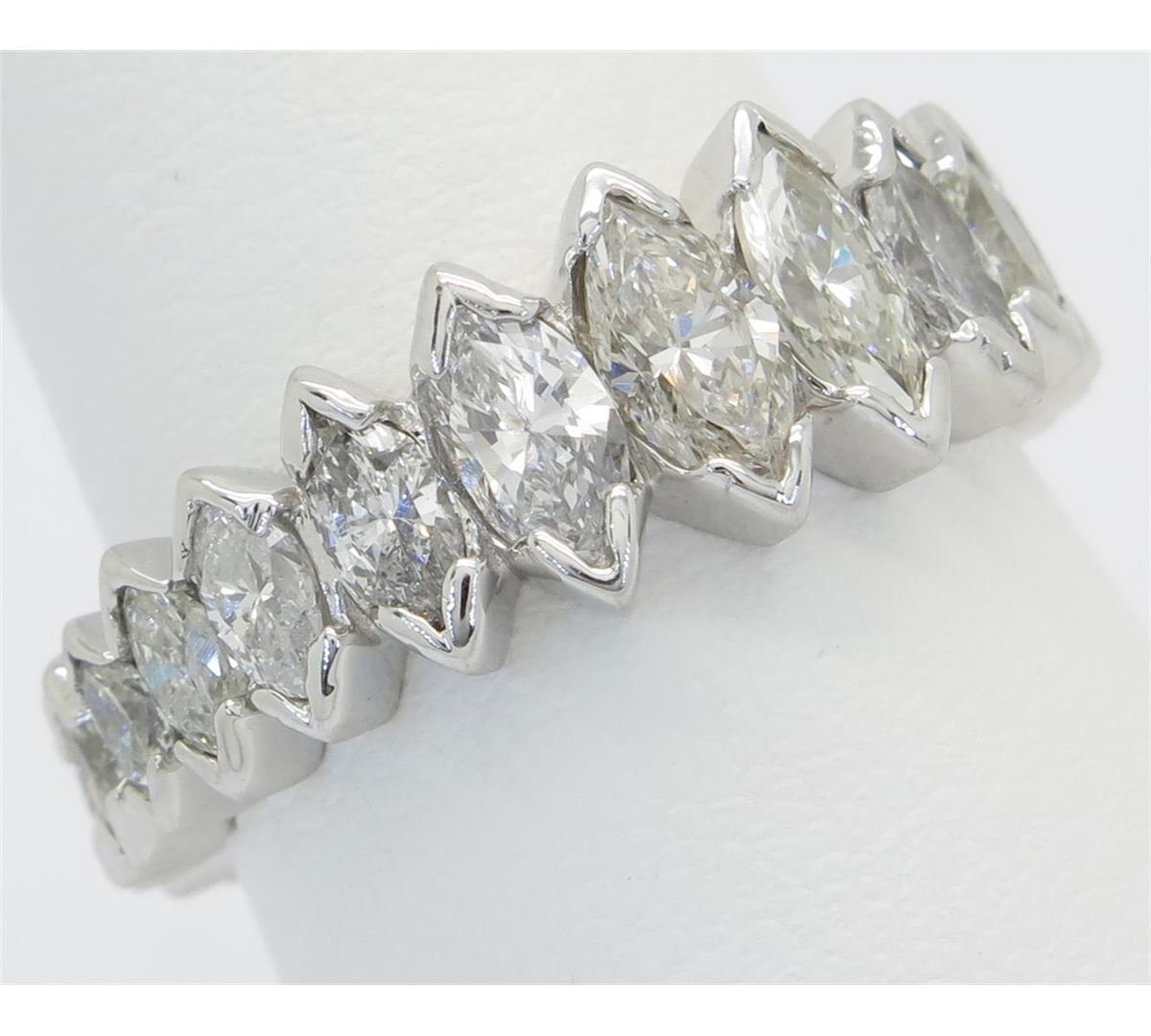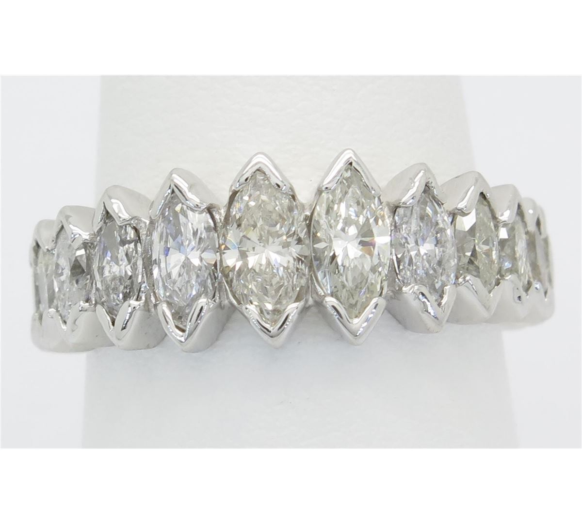 One tested 14K white gold diamond ring. Containing: 26 Marquise Cut Diamonds, Clarity: I-SI, Color: G-K. Approximate total diamond weight: 3.00CTW. All diamonds are graded in the mounting unless otherwise stated. Weight of ring: 4.6 grams, Size: 6.0.