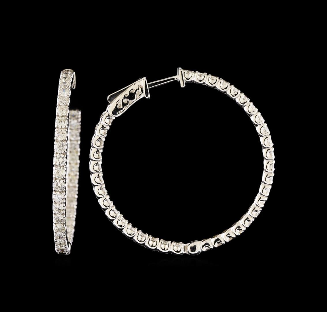 One pair electronically tested 14KT white gold lady's combination cast & assembled hoop style earrings with hinged clip backs with a bright polish finish. Identified with markings of '14K'. Condition is new, good workmanship. Containing: Seventy-Two prong set round brilliant cut diamonds, measuring 2.30 - 2.20 x 1.35mm (depth est.) approximate total weight of 72 Stones = 3.01ct. Graded in the setting. Clarity SI-1 to I-1. Color: G - I Cut Good. Total Weight of Diamonds 3.01ct.. Total Weight of Earrings 9.50gm. GAS Appraised at $8,155.00.
