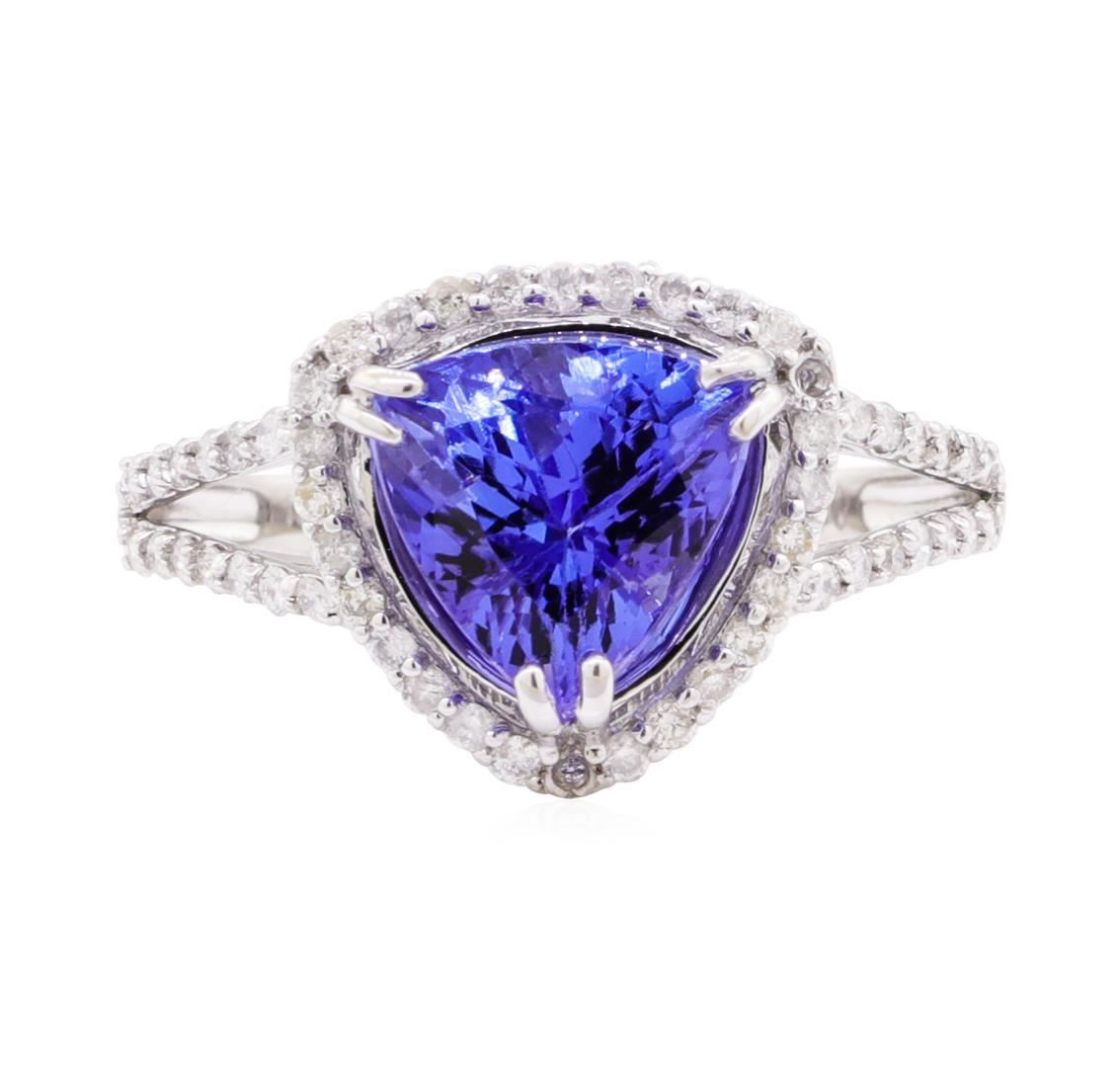 One 3.03 ct Tanzanite and Diamond Ring - 14KT White Gold.
