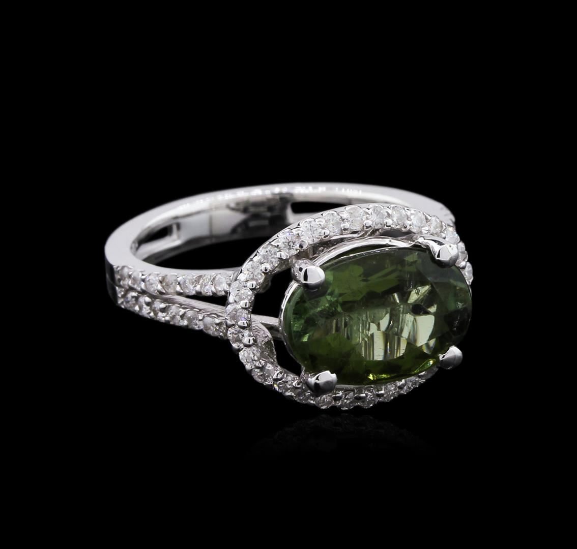 One ring featuring: 14KT white gold weighing 5.08 grams containing one green tourmaline with a total weight of 3.03ct and diamonds with a total weight of 0.58ct.