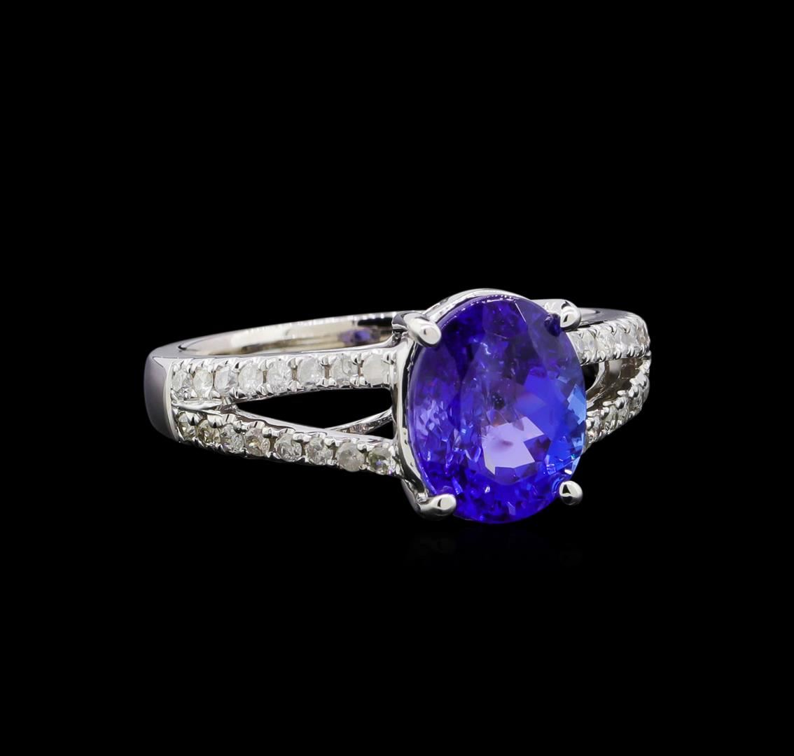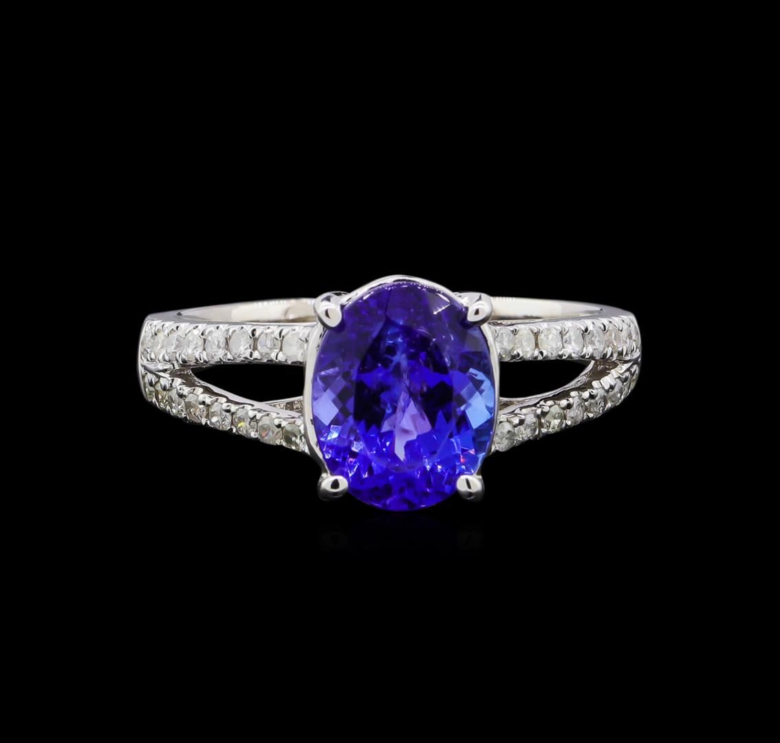 One electronically tested 14KT white gold ladies cast tanzanite and diamond ring with a bright polish finish. The featured tanzanite is supported by diamond set split shoulders, completed by a two millimeter wide band. Trademark is Orianne. Identified with markings of "14K". Condition is new, good workmanship. Containing: One prong set oval mixed cut natural tanzanite approximate weight of 3.04ct., clarity is slightly included, type I, medium dark, very slightly grayish, bluish violet color, (GIA bV 6/3), cut is good. Transmitting light with a minimum of distortion, transparent. Naturally occurring internal & external characteristics are present. Graded in the setting. Tanzanite is a very rare gemstone that is only found in the country of Tanzania. Originally discovered in 1967. Tiffany & Company, named the stone Tanzanite. It is found in the Usumburu Mountains that border the Umba Valley of northern Tanzania. Tanzanite occurs in gray, brown, violet, blue, reddish-purple, & green. The gem is interesting because of its exceptional pleochroism. Rotated in different directions a tanzanite will exhibit multiple changes of color. Tanzanite has a low tolerance to ultrasonic cleaning, and should not be cleaned using this method. Thirty-Two prong set round brilliant cut diamonds approximate total weight of 32 Stones = 0.30ct. Graded in the setting. Clarity: I-2 to I-3. Color: G - I. Total Weight of Colored Stones 3.04ct. Total Weight of Diamonds 0.30ct. Total Weight of Ring 4.11gm. AIG Appraised at $7,705.00.