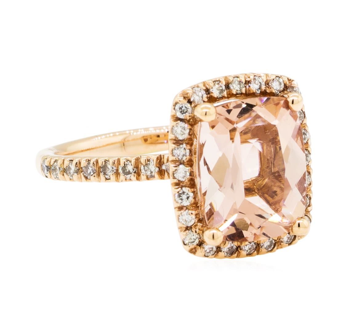 One lady's ring featuring: 14KT rose gold weighing 3.6 grams containing one morganite weighing 3.06ct and diamonds weighing 0.37ctw.