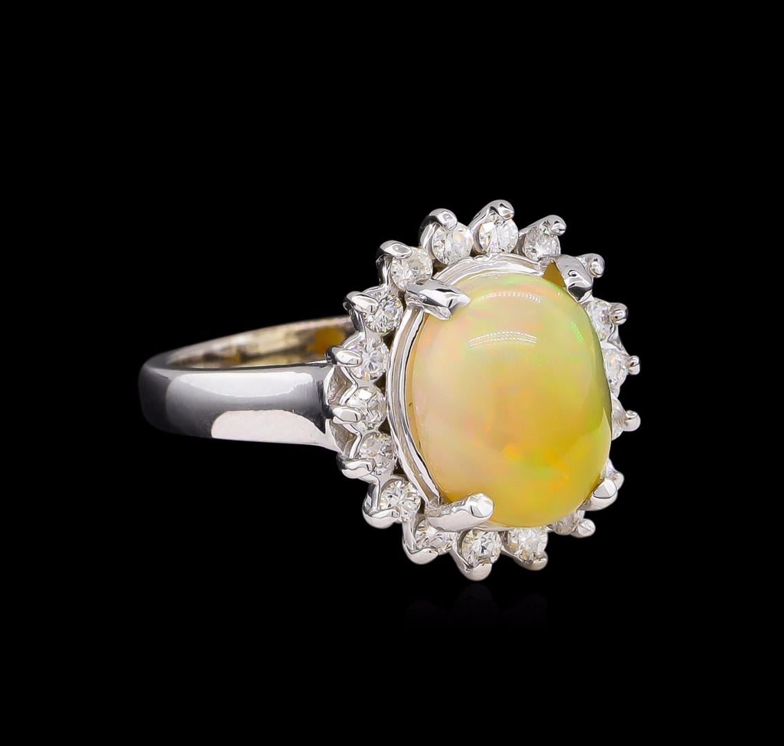 One ring featuring: 14KT white gold weighing 5.68 grams containing one opal with a total weight of 3.07ct and side diamonds with a total weight of 0.44ct.