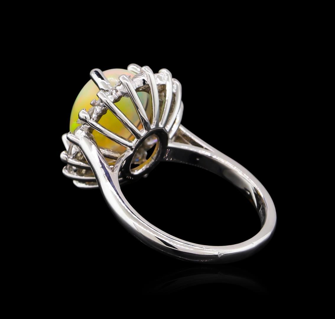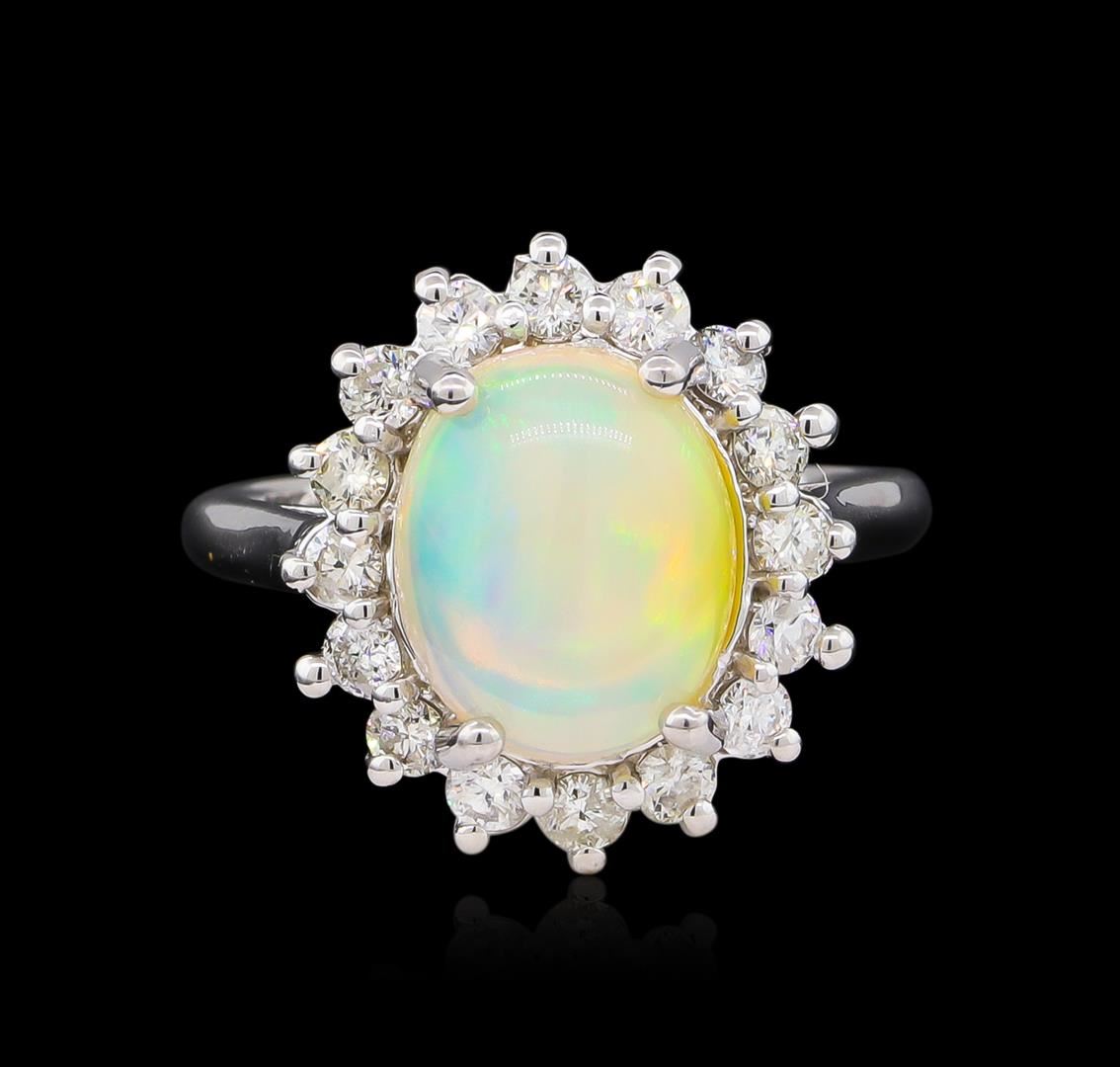 One ring featuring: 14KT white gold weighing 4.86 grams containing one opal with a total weight of 3.07ct and side diamonds with a total weight of 0.78ct.