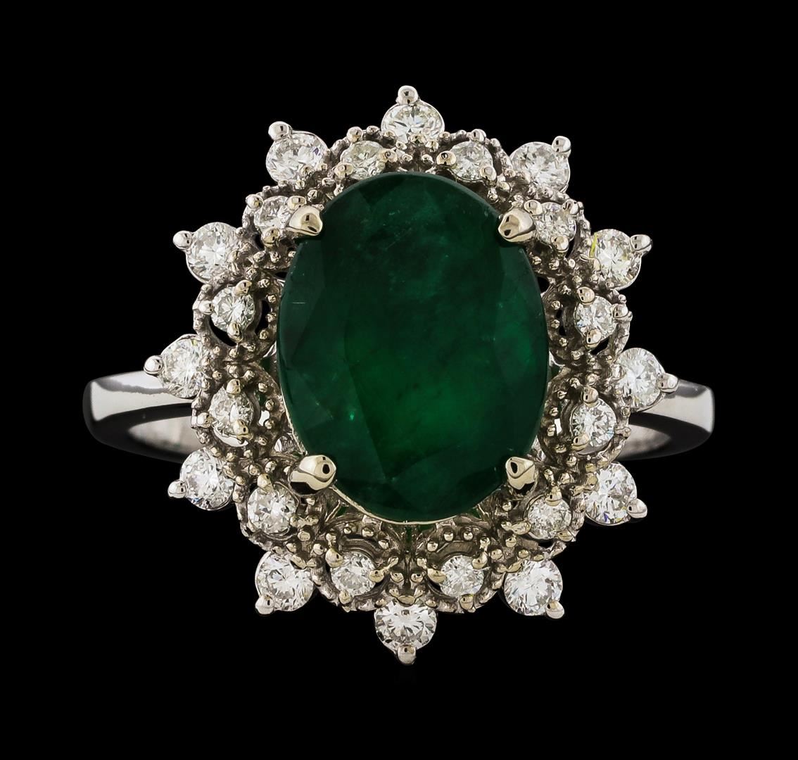 One ring : 14KT white gold weighing 3.86gm containing emerald with a total weight of 3.09ctw and side diamonds weighing 0.47ctw.