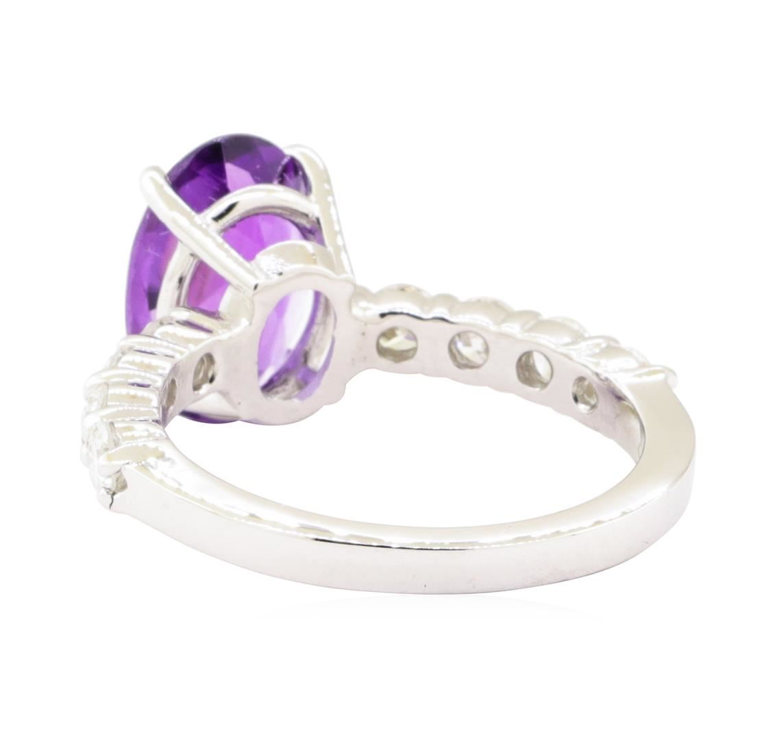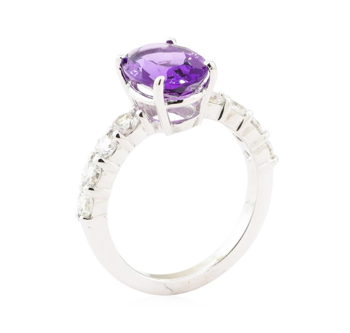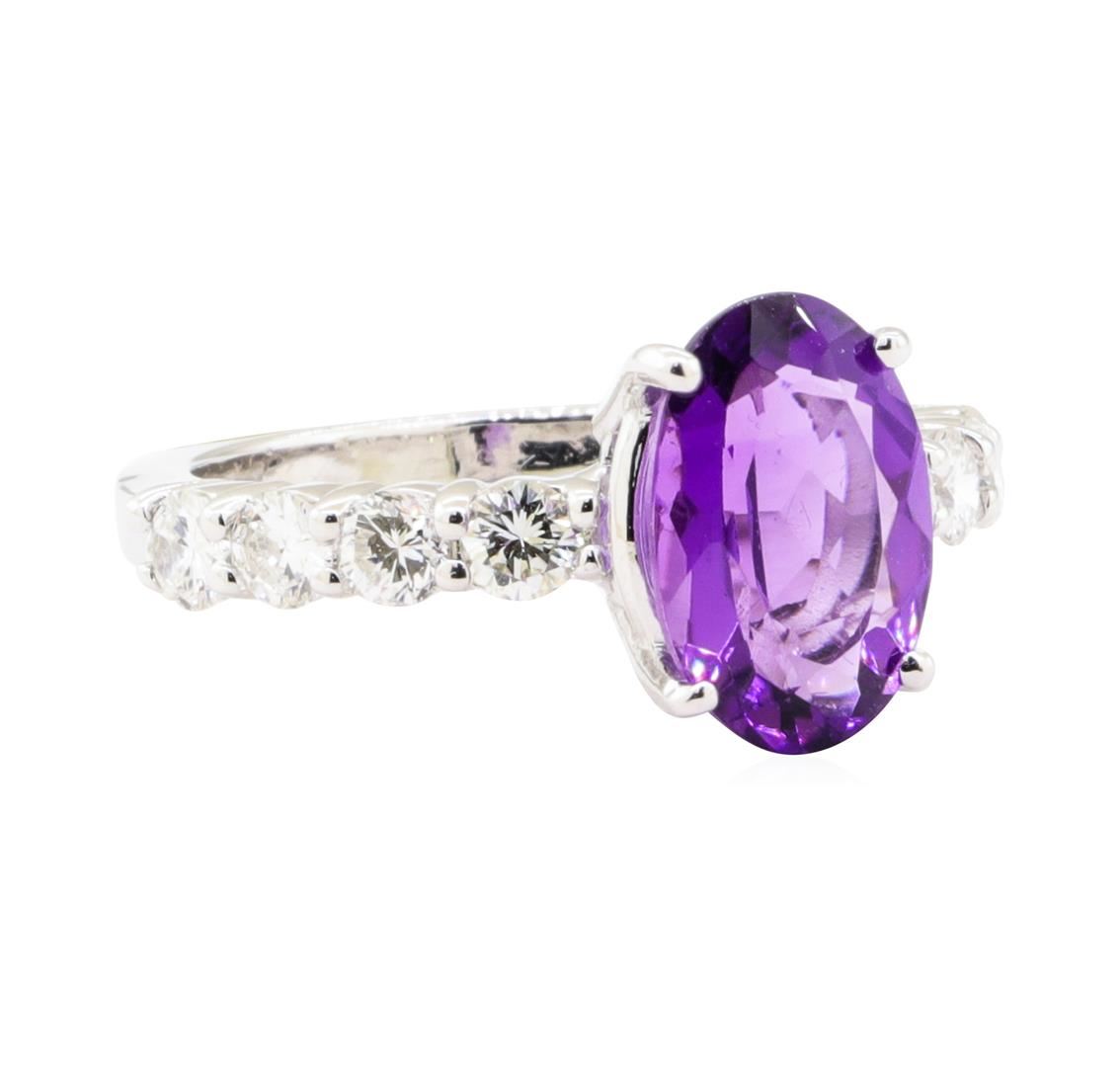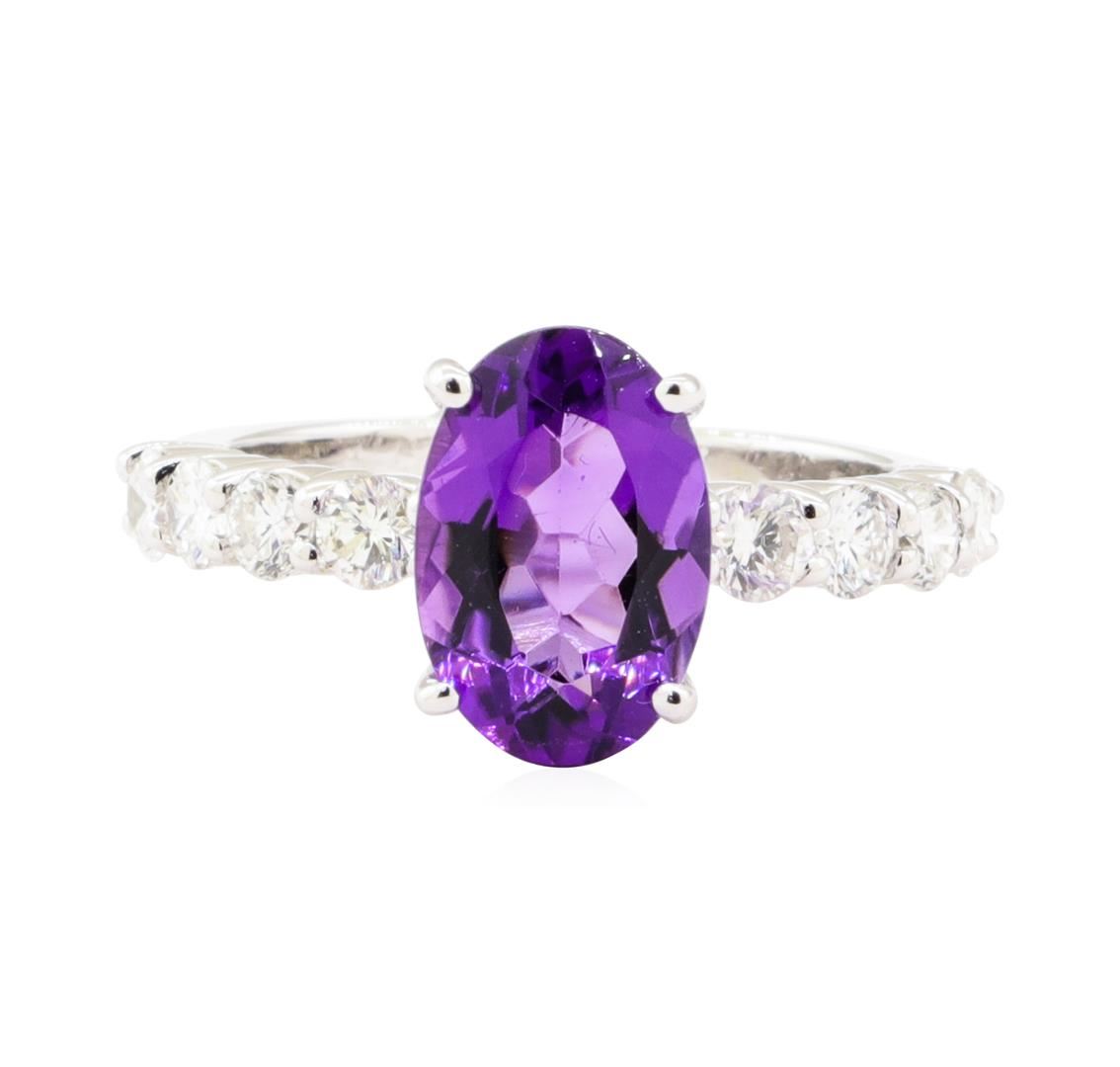 One ring featuring: 14KT white gold weighing 5.0 grams containing one oval amethyst weighing 2.30ct and 8 diamonds weighing 0.80ctw.