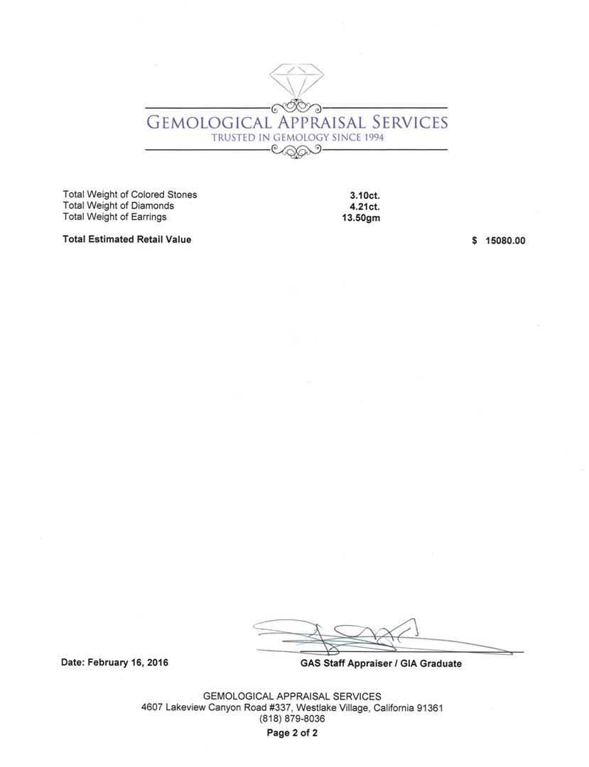 Not all Jewelry, watches or loose stones are appraised and the appraisals are provided for bidders only in certain instances at the discretion of SAA. Our appraisals are conducted by independent third-party appraisal firms. Such firms may be certified GIA Gemologists or have education in the industry or alternative certifications. Appraisals should be used for verification of gemstone and/or metal weight, size, and grade only, not actual value for resale or insurance purposes. Appraisal value should be not considered for actual value, as price varies greatly from retail locations and other merchants in different geographic locations. All Items auctioned by SAA should not be purchased with a view or expectation toward resale for appraisal price given, or to make a profit. The ultimate value for which an item can be resold may vary drastically from the appraisals listed by SAA.