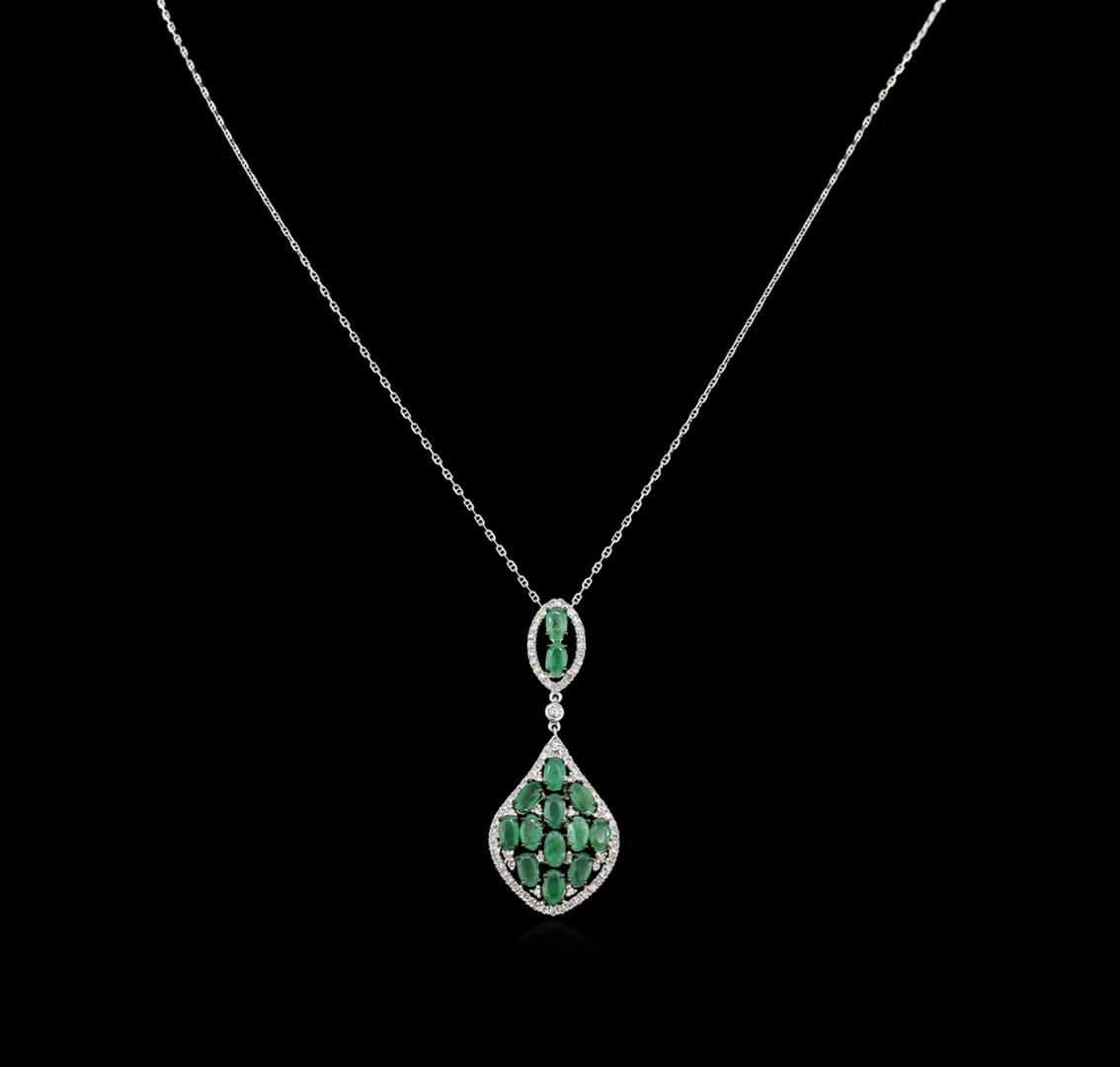 One pendant with chain featuring: 14KT white gold weighing 4.60 grams containing emeralds with a total weight of 3.10ct and diamonds with a total weight of 0.62ct.
