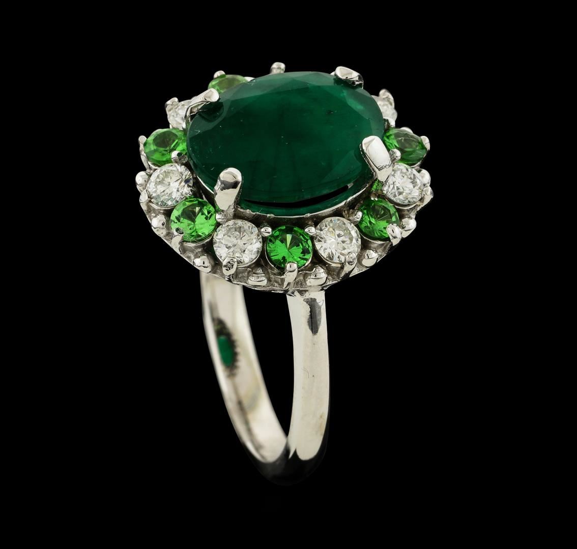 One ring : 14KT white gold weighing 4.92gm containing emerald with a total weight of 3.12ct, tsavorite weighing 0.57ctw and diamonds weighing 0.58ctw.