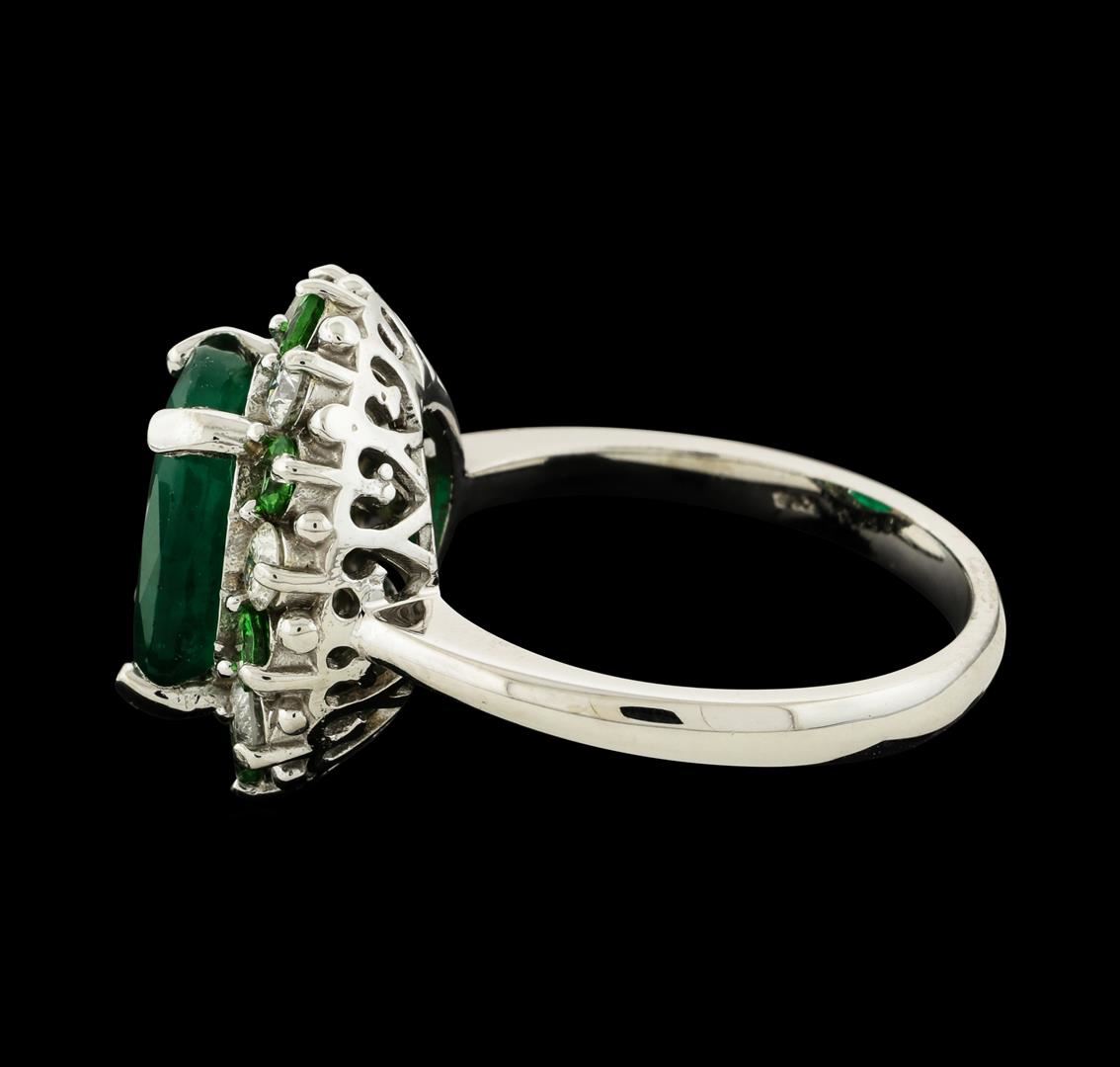 One ring : 14KT white gold weighing 4.92gm containing emerald with a total weight of 3.12ct, tsavorite weighing 0.57ctw and diamonds weighing 0.58ctw.