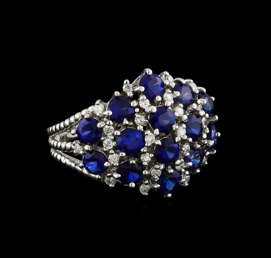 One Ring featuring: 14KT White Gold weighing 4.95 grams containing Blue Sapphires with a total weight of 3.12ct and Diamonds with a total weight of 0.28ct.