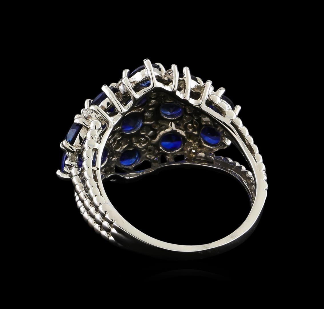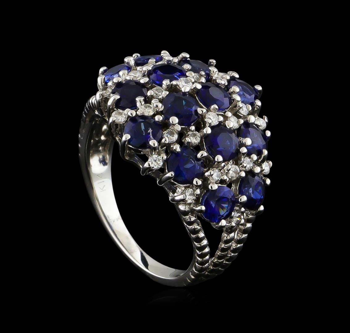 One Ring featuring: 14KT White Gold weighing 4.95 grams containing Blue Sapphires with a total weight of 3.12ct and Diamonds with a total weight of 0.28ct.