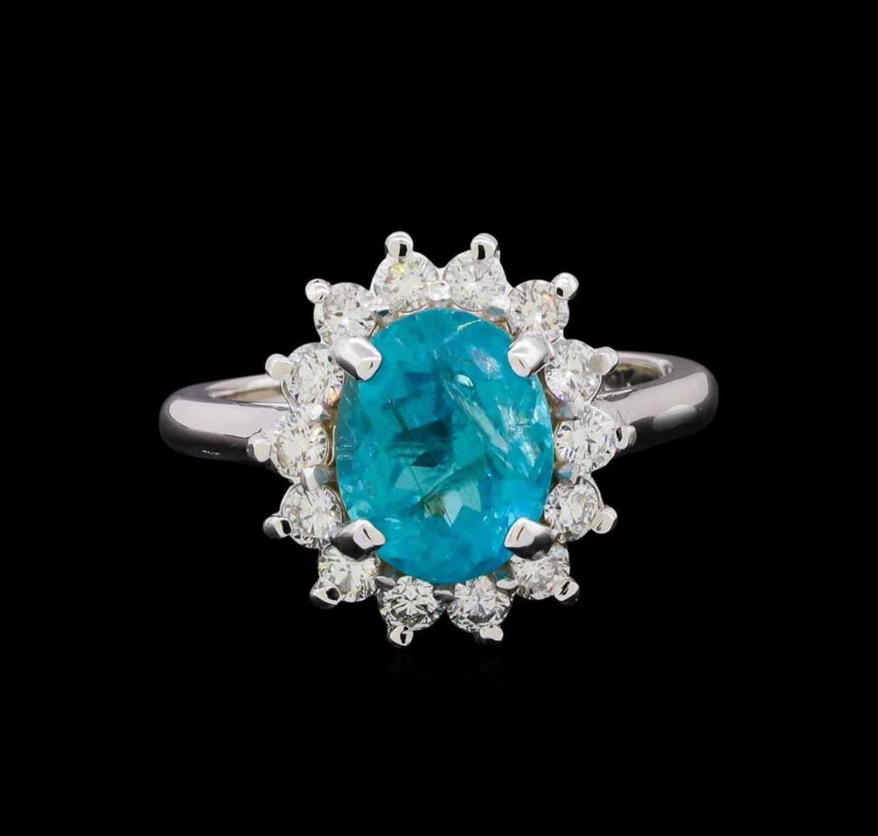 One ring featuring: 14KT white gold weighing 4.85 grams containing one apatite center stone with a total weight of 3.15ct and diamonds with a total weight of 0.72ct.