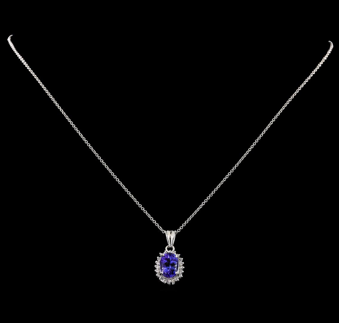 One Tanzanite and Diamond Pendant with Chain including: 14KT White Gold weighing a total of 2.70 grams, Tanzanite weighing a total of 3.15ct, and 20 Diamonds weighing a total of 0.28ctw.
