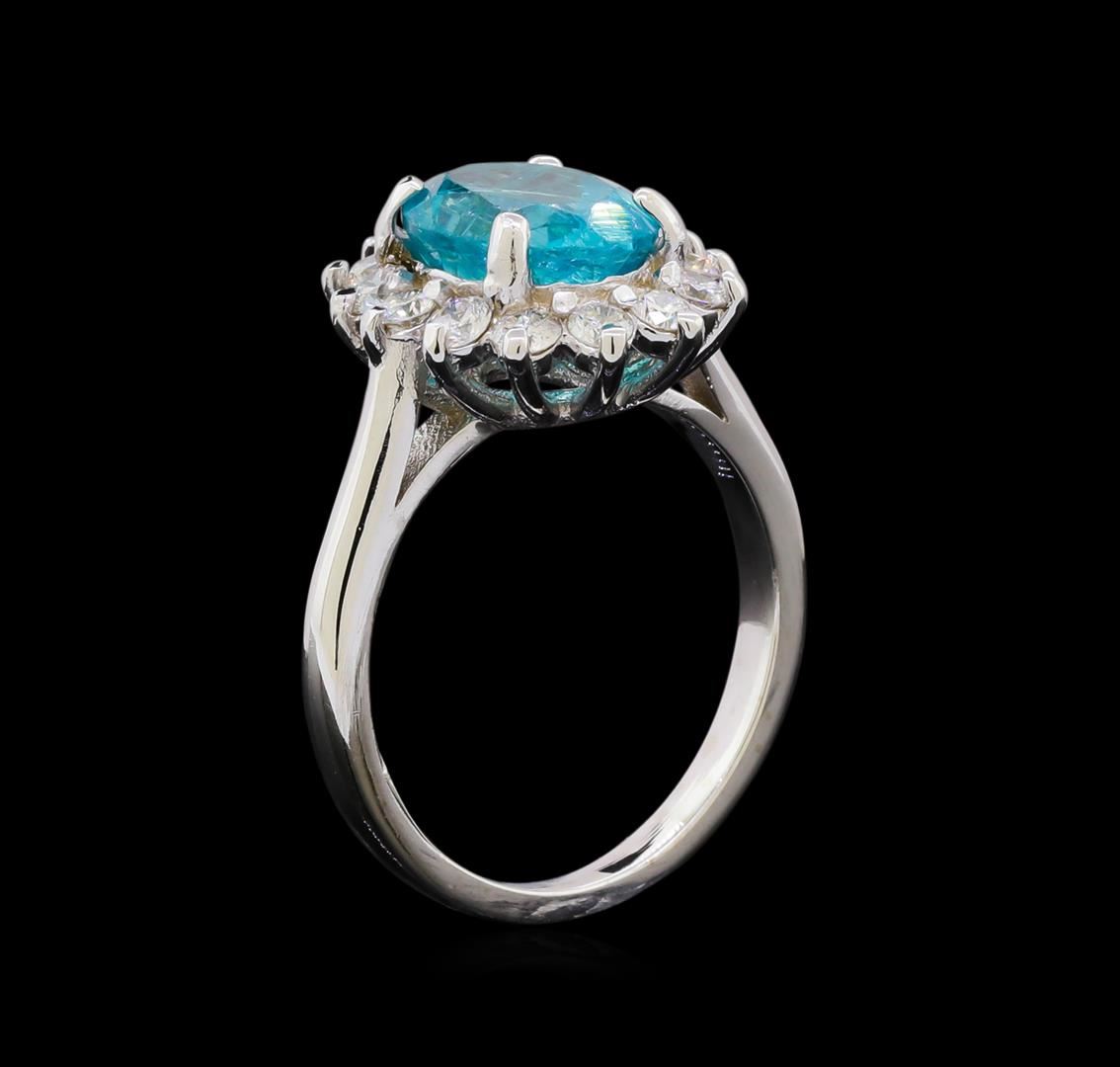 One ring featuring: 14KT white gold weighing 4.85 grams containing one apatite center stone with a total weight of 3.15ct and diamonds with a total weight of 0.72ct.