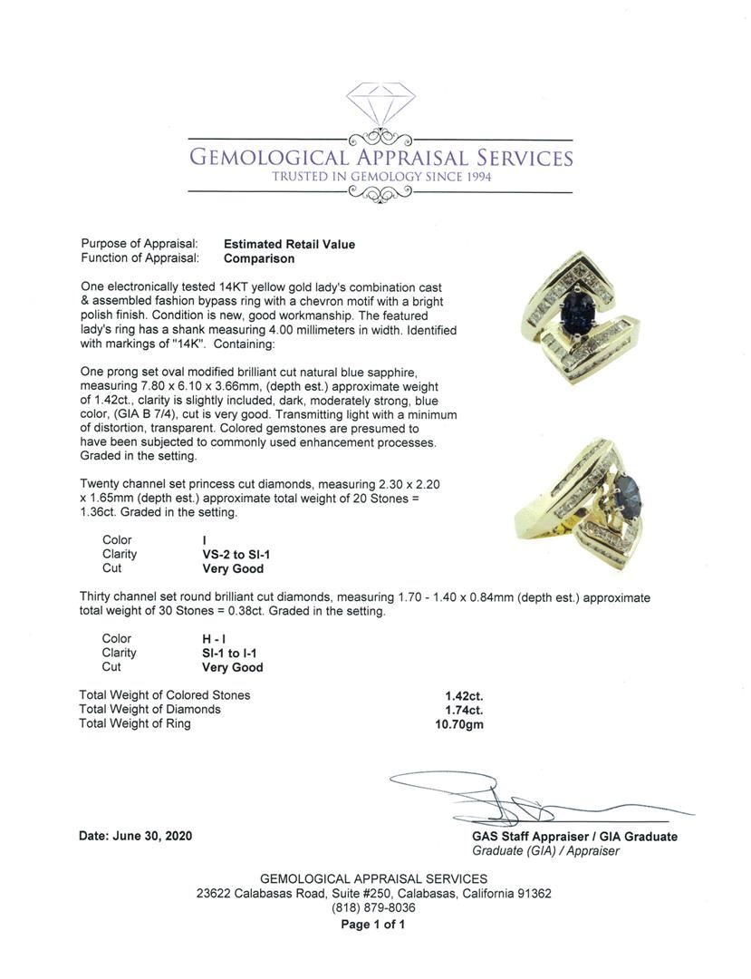 One electronically tested 14KT yellow gold lady's combination cast & assembled fashion bypass ring with a chevron motif with a bright polish finish. The featured lady's ring has a shank measuring 4.00 millimeters in width. Identified with markings of '14K