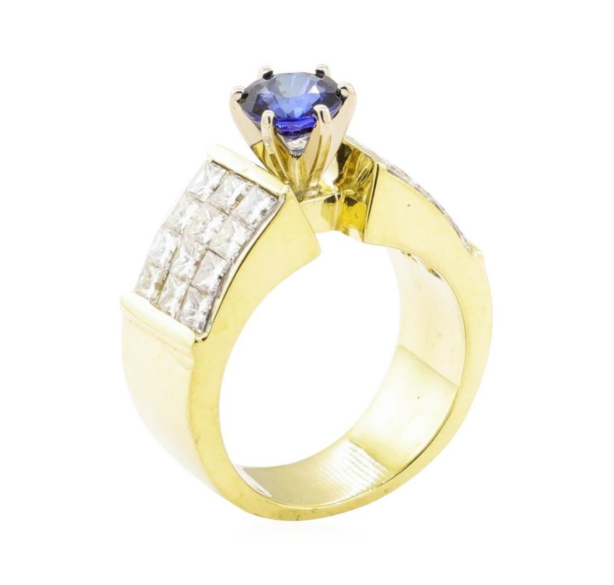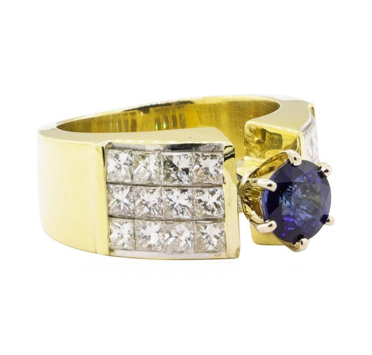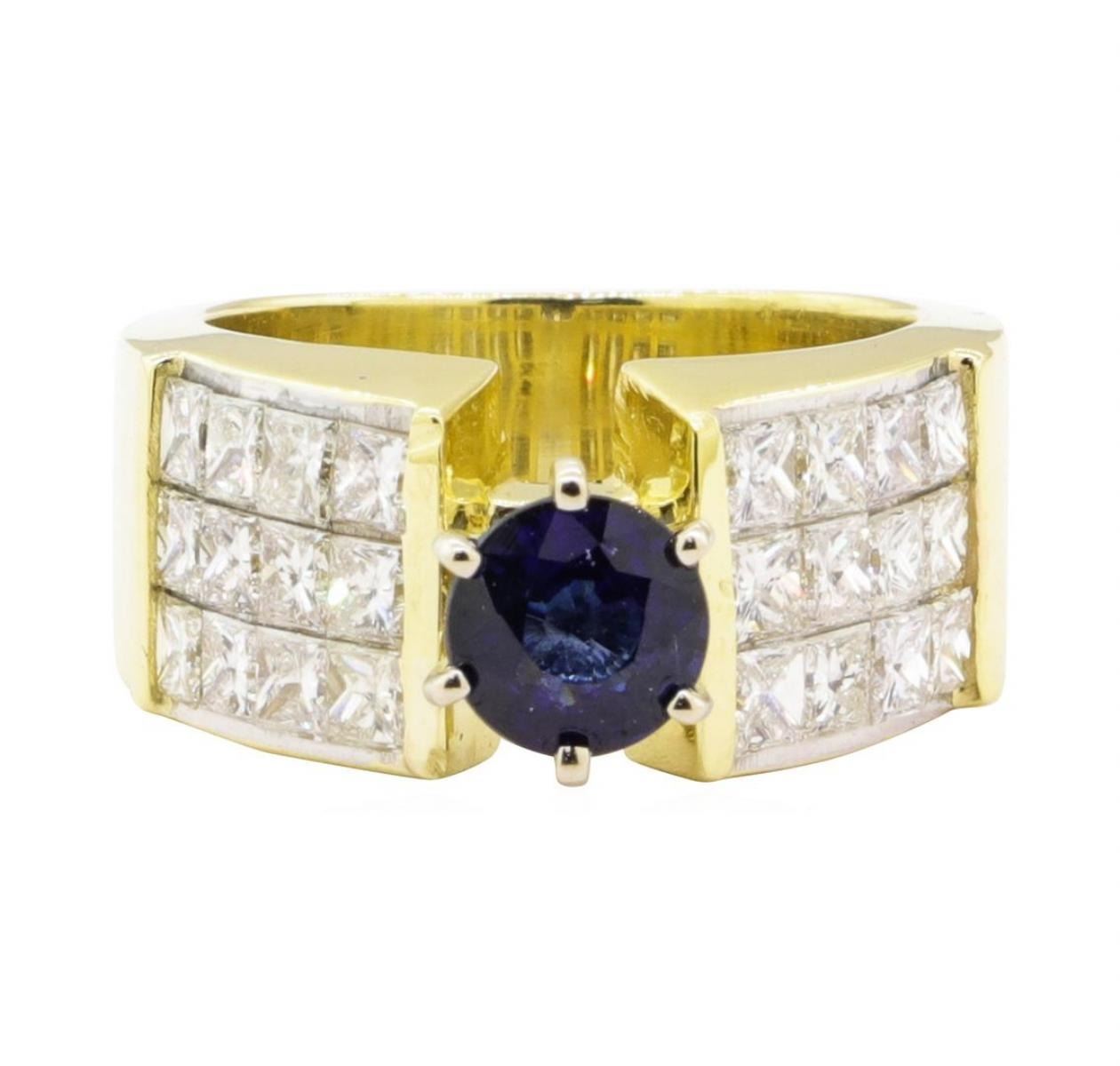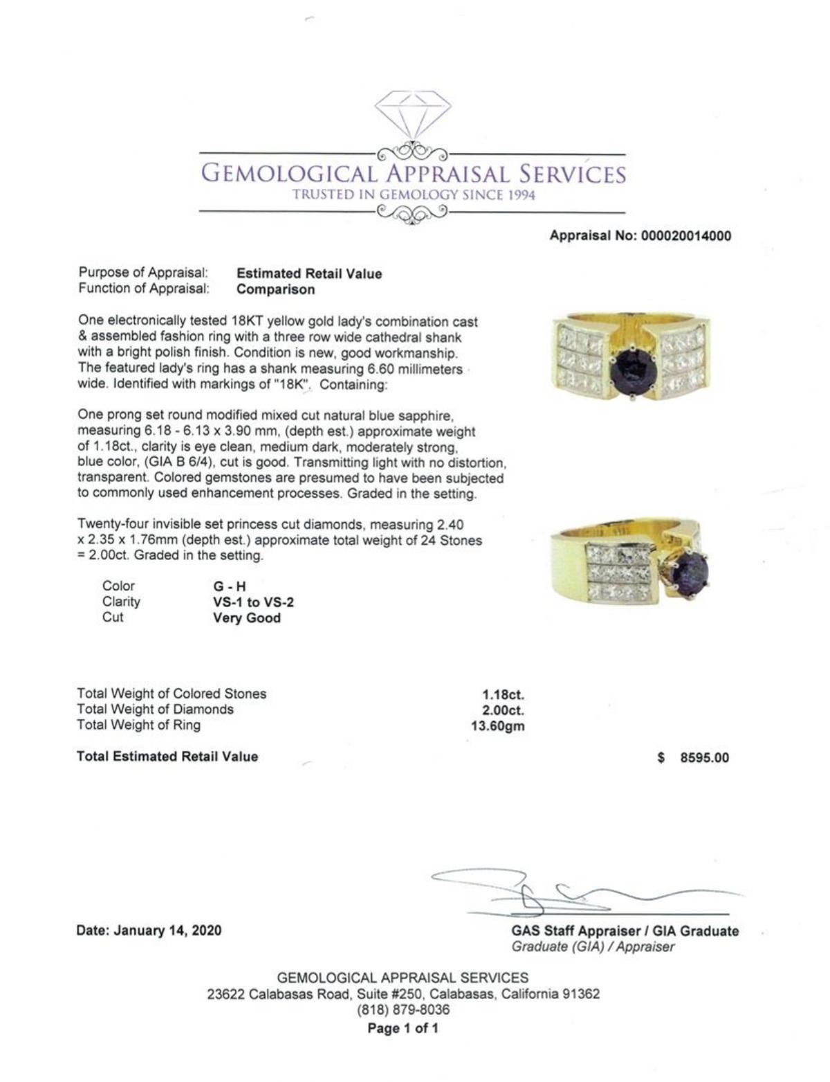 One electronically tested 18KT yellow gold lady's combination cast & assembled fashion ring with a three row wide cathedral shank with a bright polish finish. The featured lady's ring has a shank measuring 6.60 millimeters wide. Identified with markings o