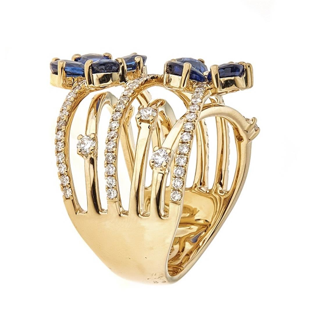 One Ring : 18KT yellow gold weighing 11.18gm containing eight blue sapphire stones with a total weight of 3.18ctw and side diamonds weighing 0.83ctw.