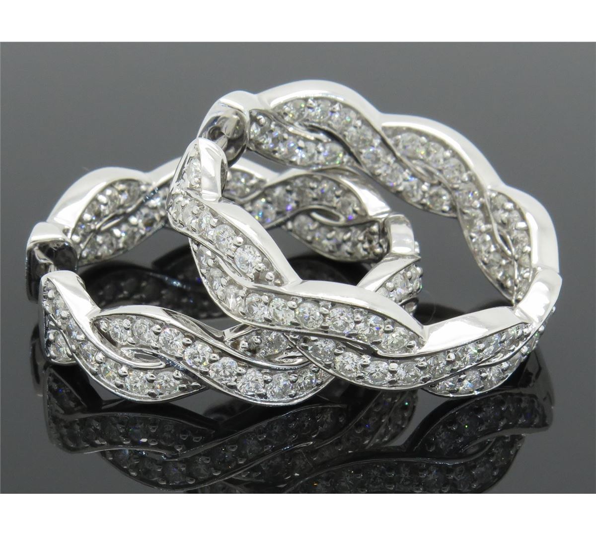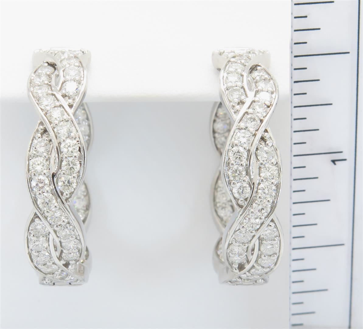 One tested pair of 14K white gold diamond earrings. Containing: 112 Round Brilliant Cut Diamonds. Clarity: I-SI, Color: F-H. Approximate total diamond weight: 3.18CTW. All diamonds are graded in the mounting unless otherwise stated. Weight of earrings 17.3 grams