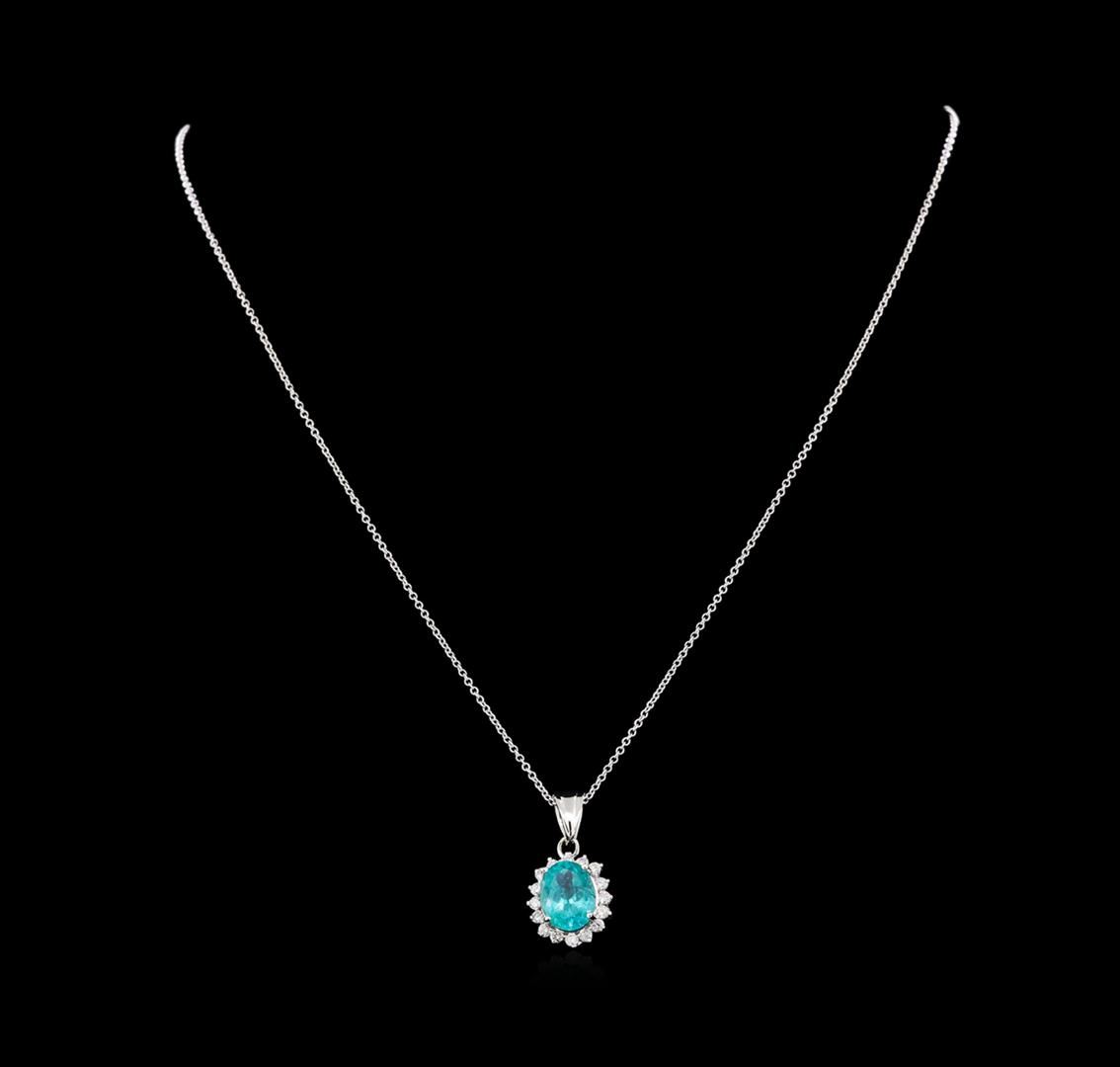 One pendant with chain featuring: 14KT white gold weighing 2.40 grams containing one apatite with a total weight of 3.20ct and diamonds with a total weight of 0.45ct.
