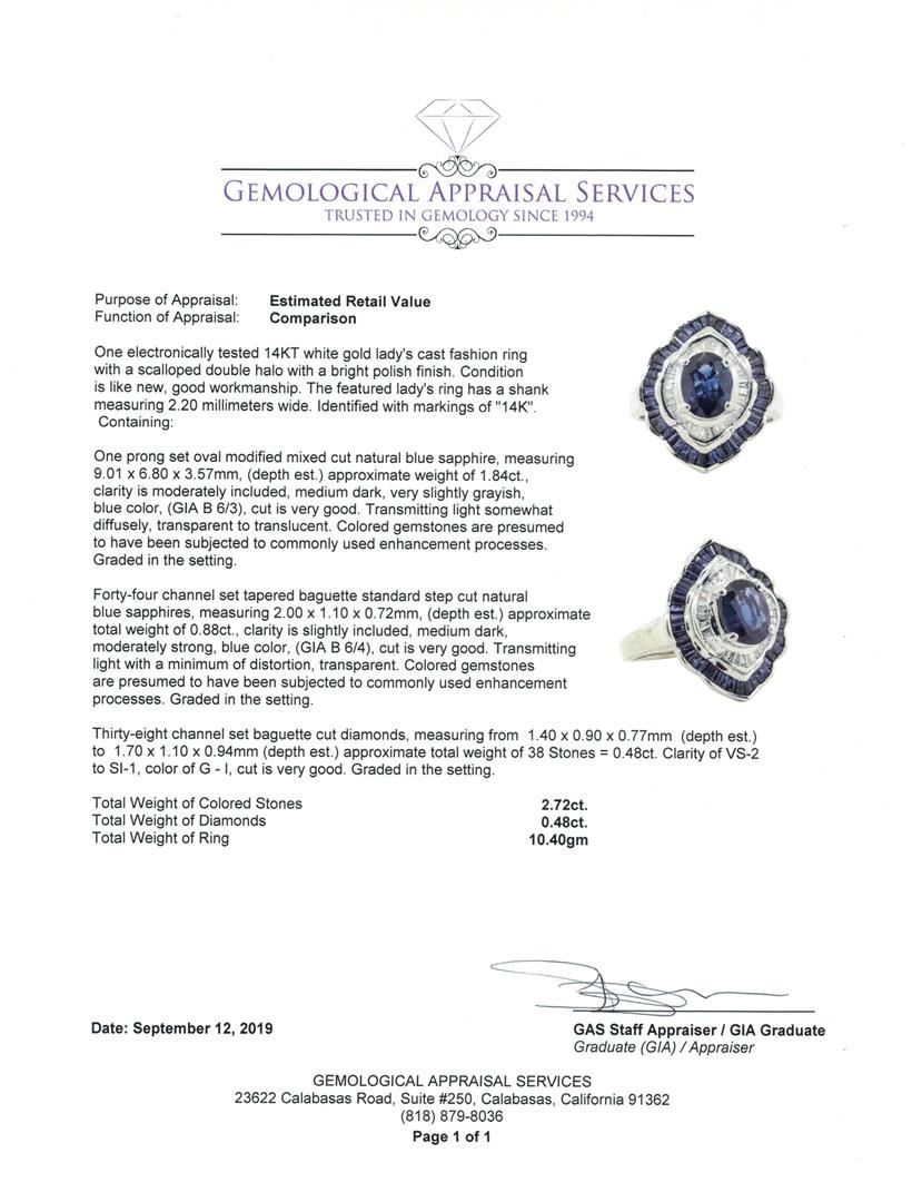 One electronically tested 14KT white gold lady's cast fashion ring with a scalloped double halo with a bright polish finish. The featured lady's ring has a shank measuring 2.20 millimeters wide. Identified with markings of '14K'. Condition is Good. Contai