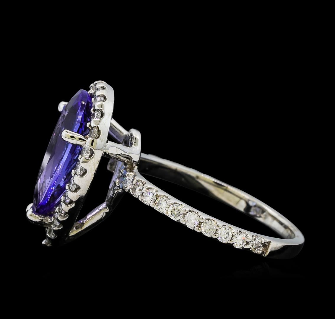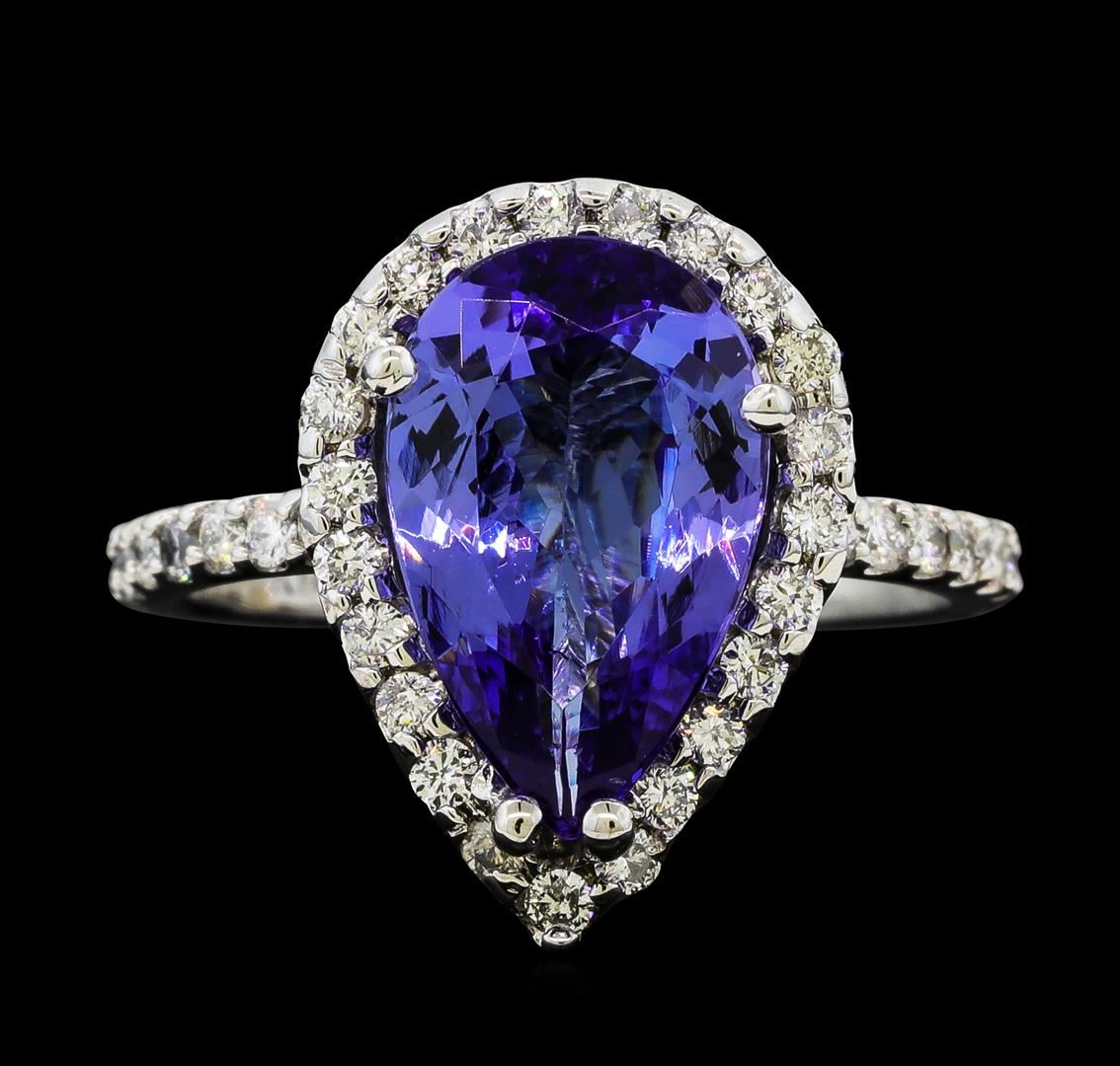 One Tanzanite and Diamond Ring including: 14KT White Gold weighing a total of 3.71 grams, Tanzanite weighing a total of 3.20ct, and 43 Diamonds weighing a total of 0.58ctw.