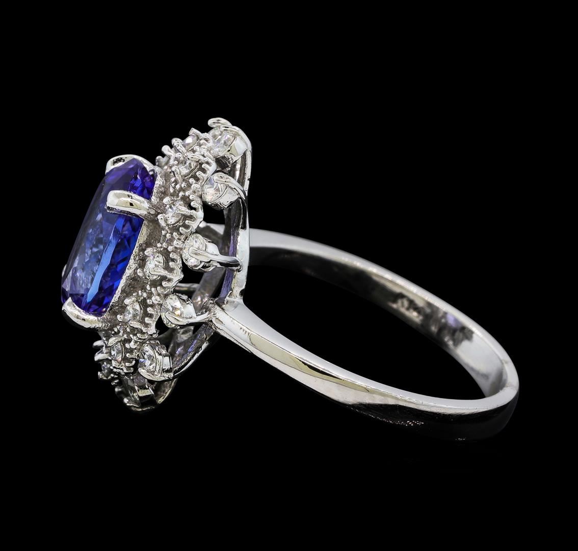 One Tanzanite and Diamond Ring including: 14KT White Gold weighing a total of 3.92 grams, Tanzanite weighing a total of 3.21ct, and 24 Diamonds weighing a total of 0.48ctw.