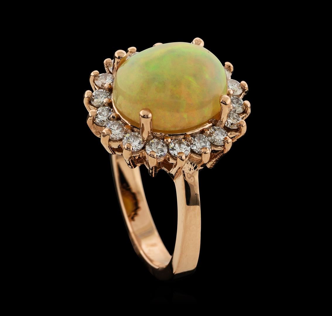 One ring : 14KT rose gold weighing 5.53gm containing opal with a total weight of 3.25ct and diamonds weighing 0.65ctw.