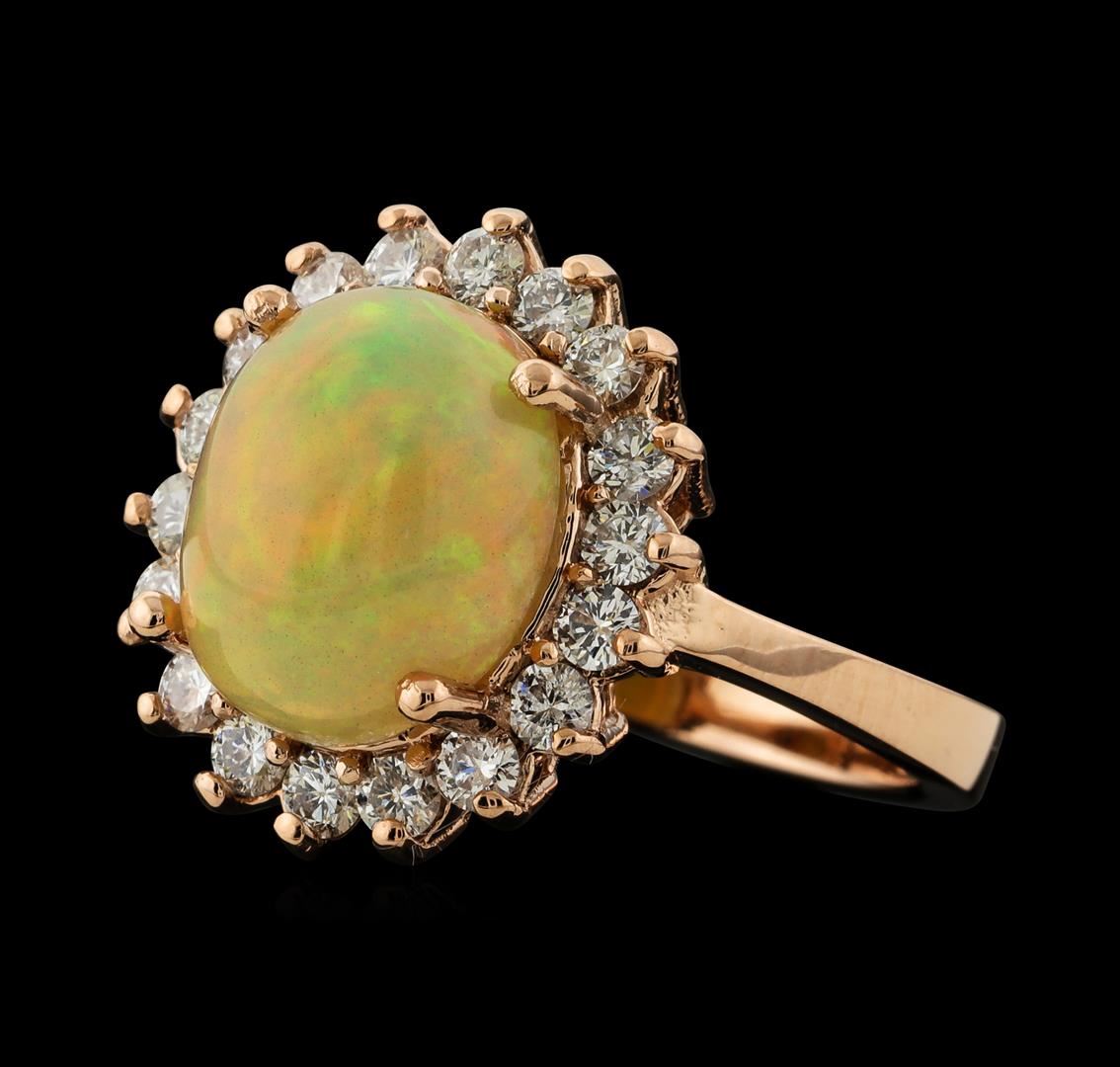 One ring : 14KT rose gold weighing 5.53gm containing opal with a total weight of 3.25ct and diamonds weighing 0.65ctw.