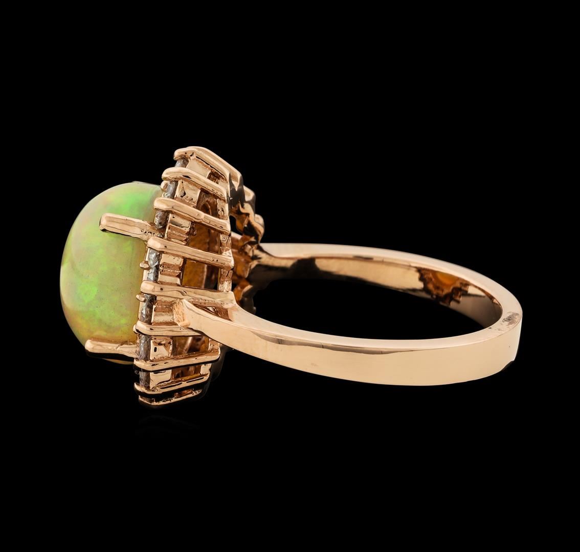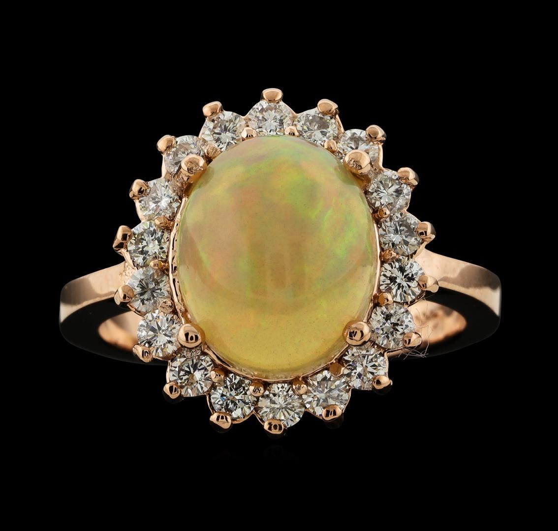 One ring : 14KT rose gold weighing 5.53gm containing opal with a total weight of 3.25ct and diamonds weighing 0.65ctw.