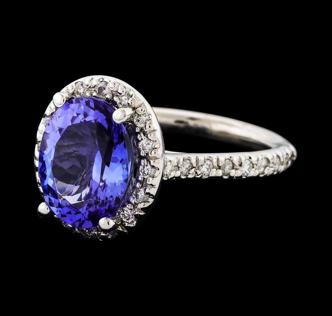 One Tanzanite and Diamond Ring featuring: 14KT White Gold with a total weight of 5.01 grams, One Tanzanite stone with a total weight of 3.63ct, and 34 Diamonds with a total weight of 0.45ctw.