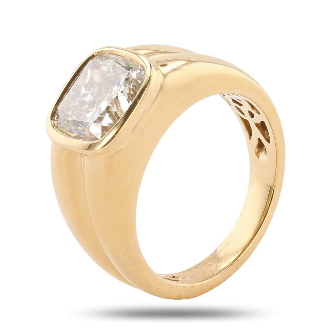 One polished, stamped, and tested 18K yellow gold ring marked Oscar Friedman. The ring is mounted with one genuine diamond weighing approximately 3.26 carat. This item weighs 8.7 grams, condition is new, excellent workmanship. #MAIN GEMSTONE# Identity: Natural Diamond Shape: Cushion Cutting Style: Modified Brilliant Cut Measurements: 8.9 x 8.2 x 5.6 Weight: 3.26 carat Color Grade: H Clarity Grade: SI3 Polish: Very Good Symmetry: Very Good Refractive Index: 2.417 Hardness: 10 DIAMOND WEIGHT: 3.26 ct WEIGHT OF ITEM: 8.7 grams GOLD CONTENT: 18K Yellow Gold #LREF-33111