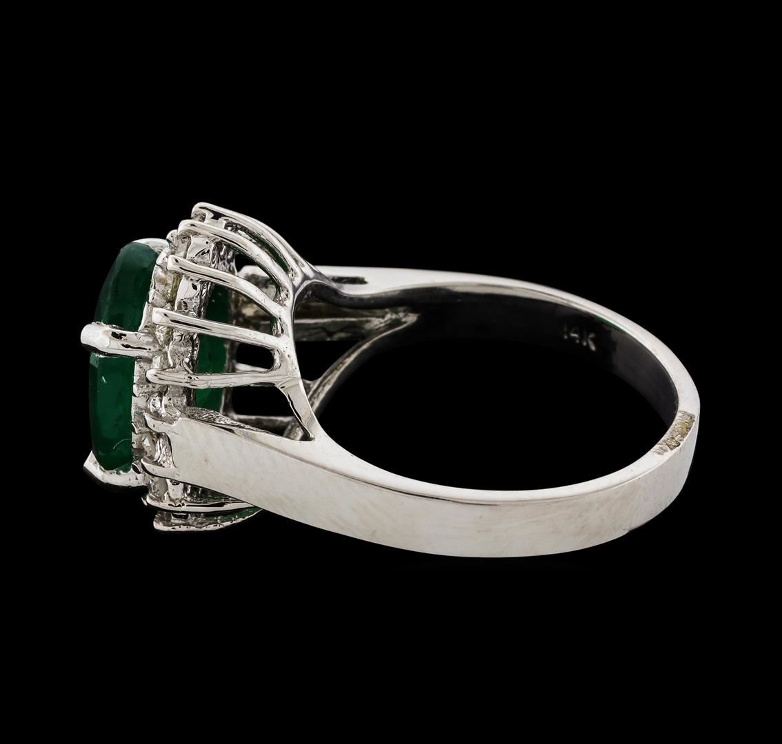 One ring : 14KT white gold weighing 4.94gm containing one emerald center stone with a total weight of 3.27ct and side diamonds weighing 0.47ctw.