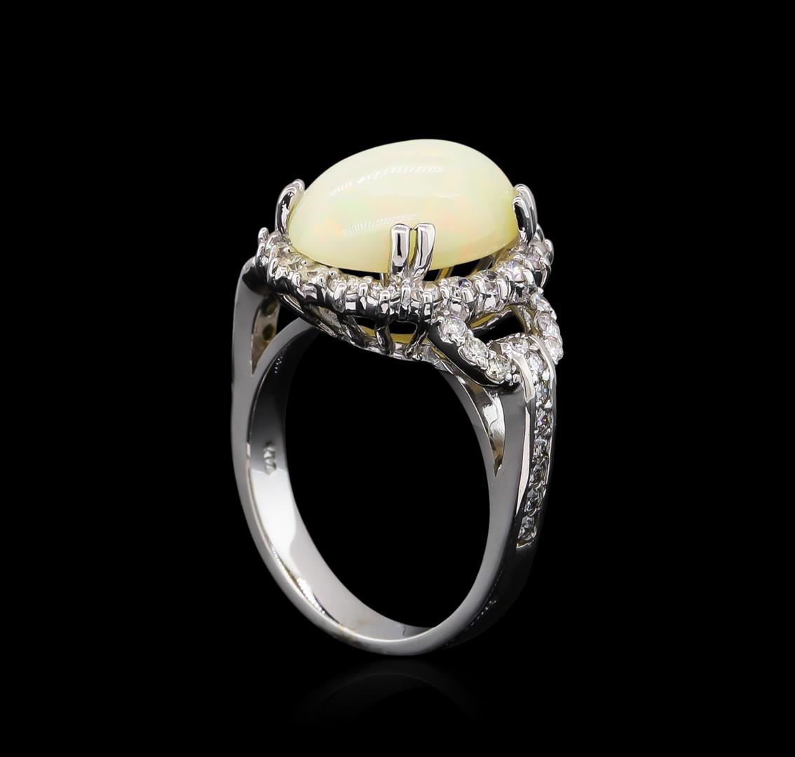 One ring featuring: 14KT white gold weighing 6.17 grams containing one opal with a total weight of 3.28ct and side diamonds with a total weight of 0.88ct.