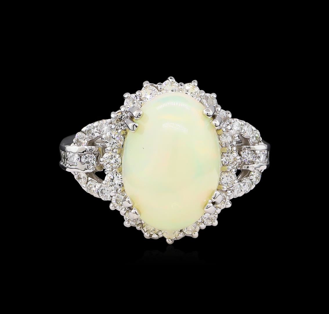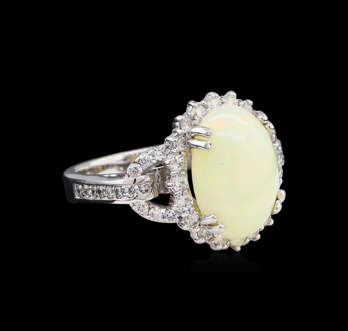 One ring featuring: 14KT white gold weighing 6.17 grams containing one opal with a total weight of 3.28ct and side diamonds with a total weight of 0.88ct.