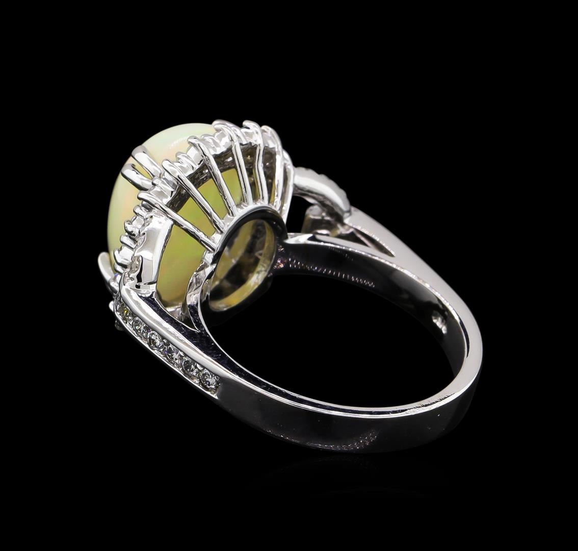 One ring featuring: 14KT white gold weighing 6.17 grams containing one opal with a total weight of 3.28ct and side diamonds with a total weight of 0.88ct.