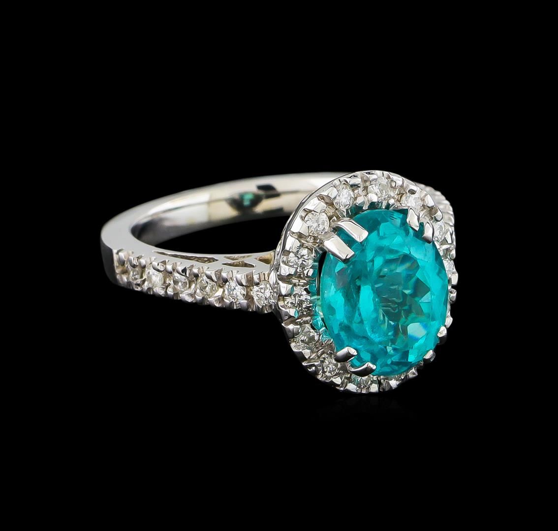 One Ring featuring: 14KT White Gold weighing 5.77 grams containing one Apatite center stone with a total weight of 3.3ct and Diamonds with a total weight of 0.36ct.