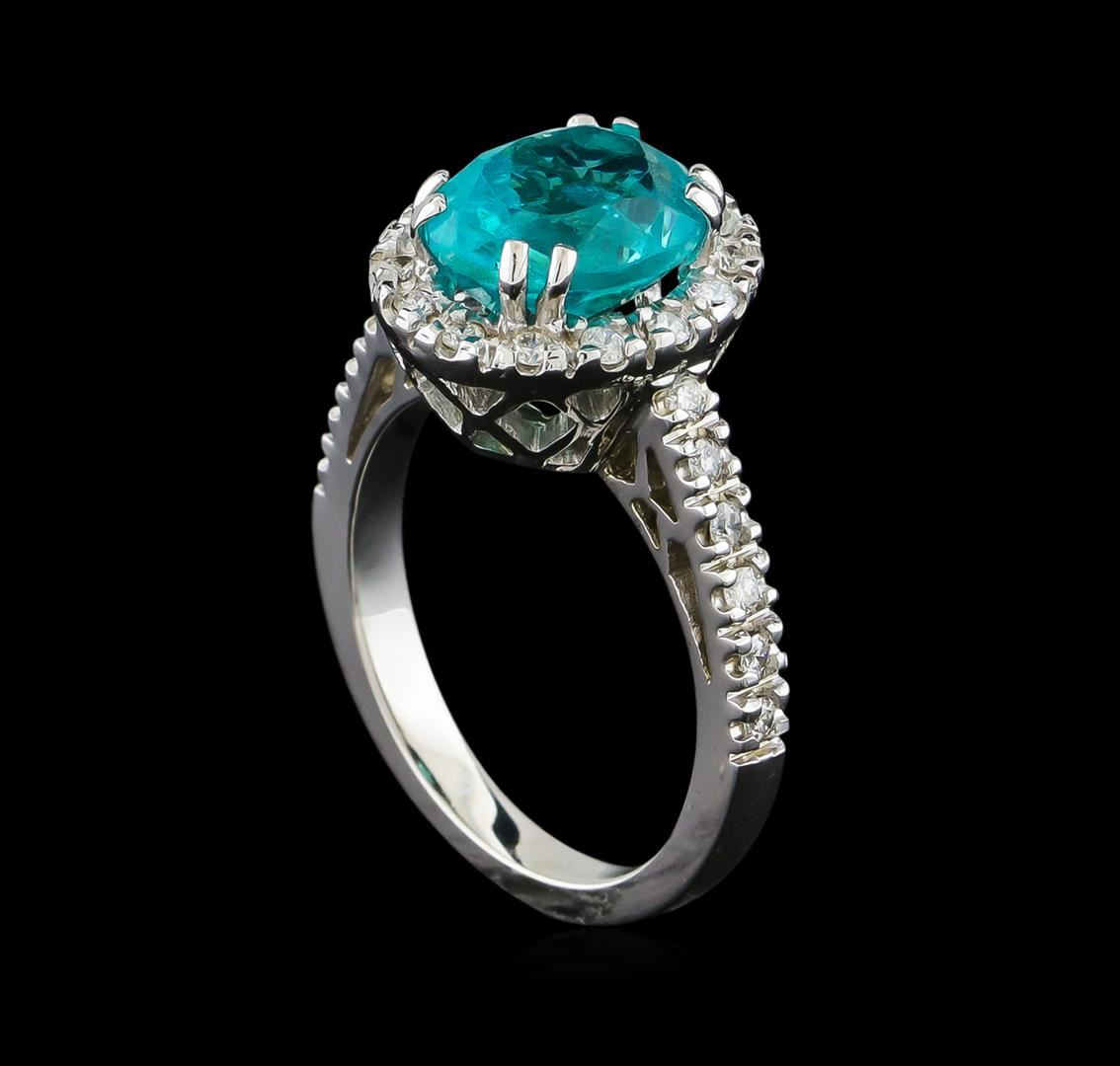 One Ring featuring: 14KT White Gold weighing 5.77 grams containing one Apatite center stone with a total weight of 3.3ct and Diamonds with a total weight of 0.36ct.