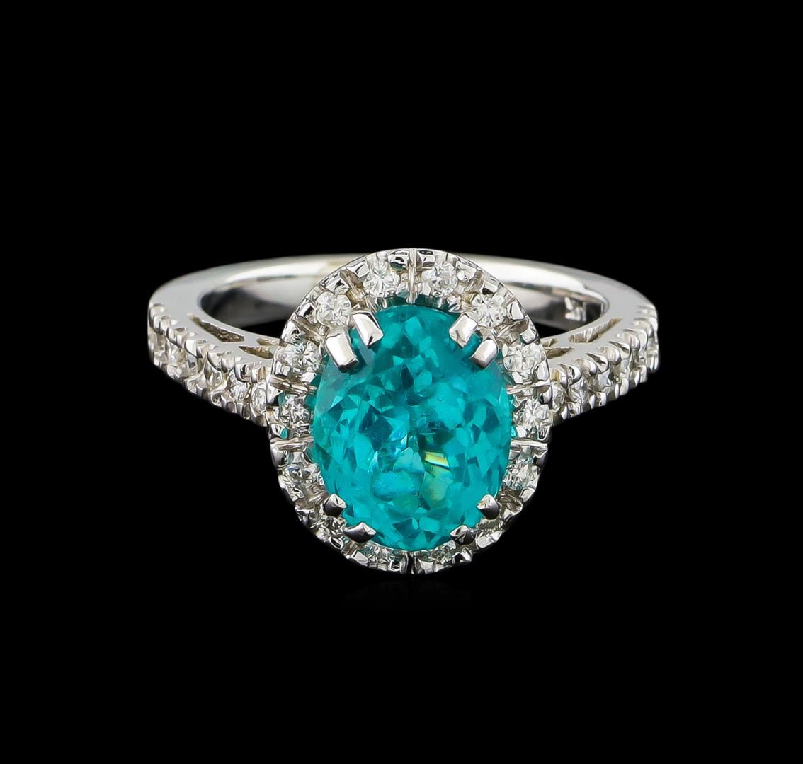 One Ring featuring: 14KT White Gold weighing 5.77 grams containing one Apatite center stone with a total weight of 3.3ct and Diamonds with a total weight of 0.36ct.